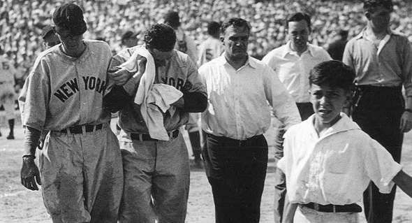 1939년 시즌의 루 게릭은 1루 수비를 하기도 버거웠다. 사진은 머리에 공을 맞고 교체되는 루 게릭