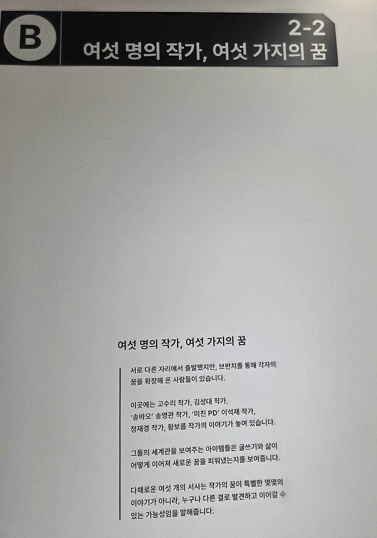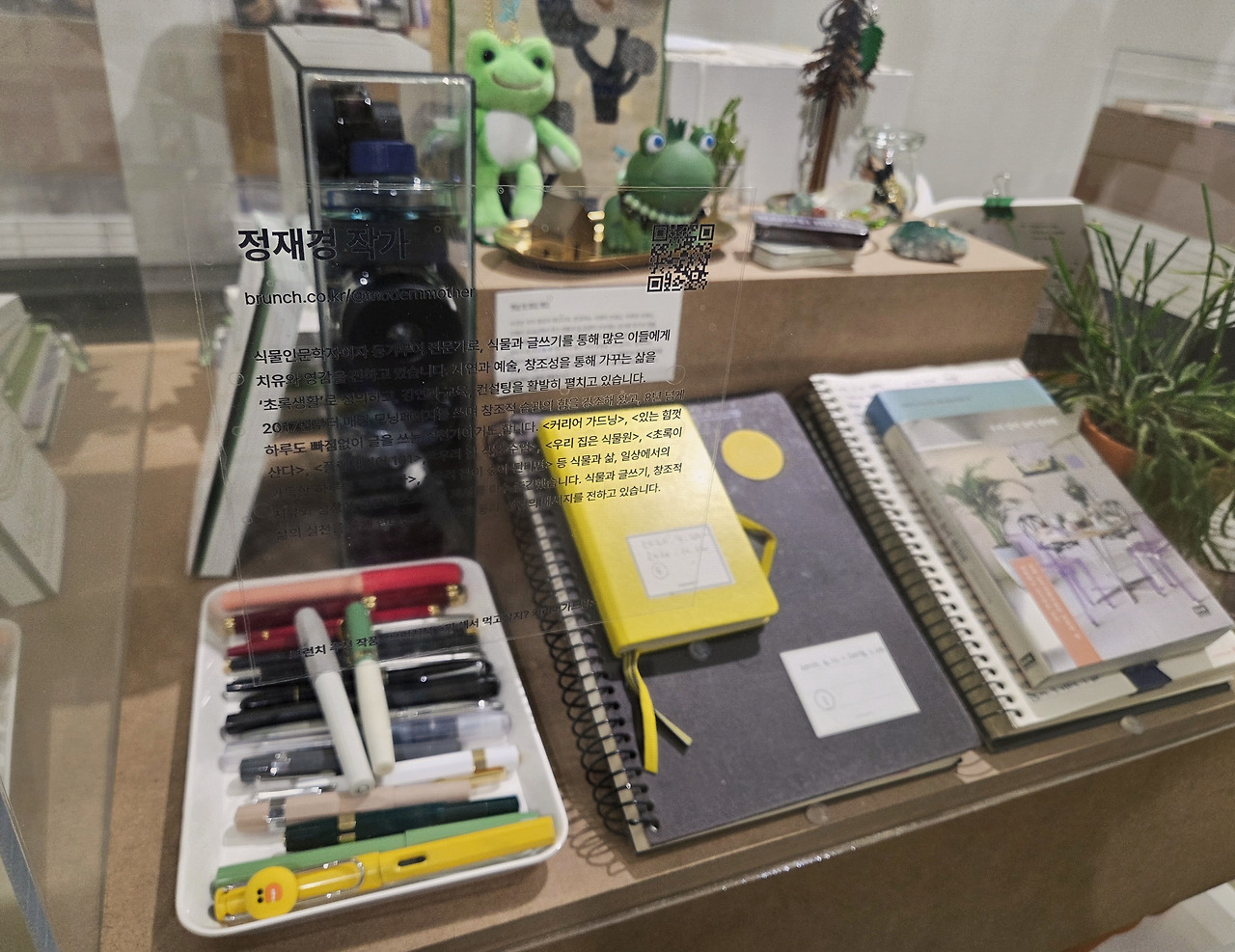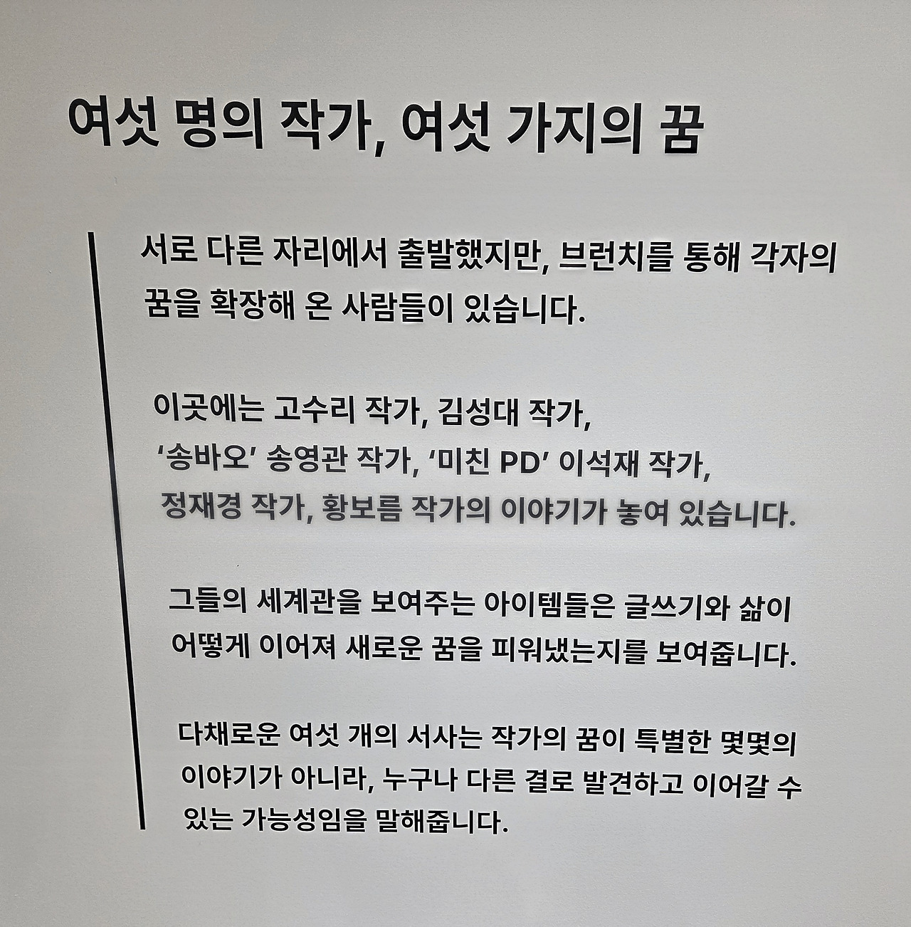 역대 브런치북 수상작들 전시를 지나면 '여섯 명의 작가, 여섯 가지의 꿈' 전시로 이어집니다. 이렇게 쟁쟁한 작가님들 사이에 제가 끼어 있다는 것이 믿어지지가 않았는데요.. 각각의 작가님들이 정말 귀중한 애장품과 소품들을 전시하고 있었습니다.