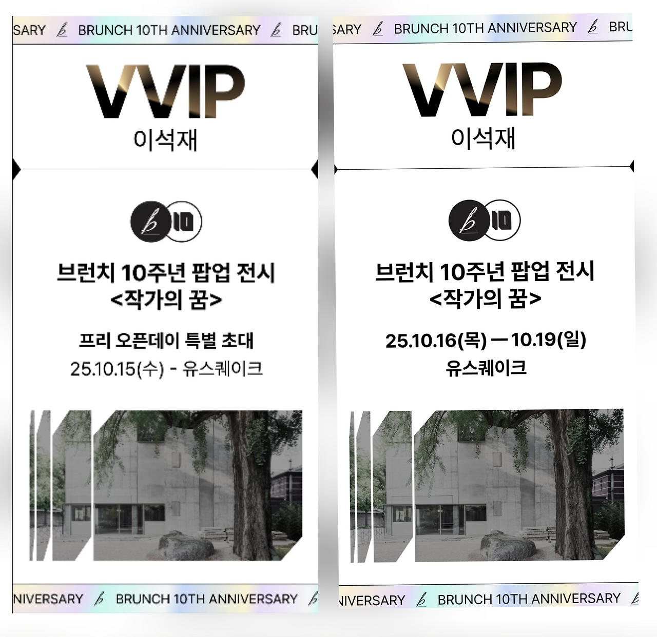 저는 오늘부터 열릴 브런치 10주년 팝업 전시에 앞서 프리 오픈 데이 초대권을 받아 하루 전날인 어제 다녀왔습니다.