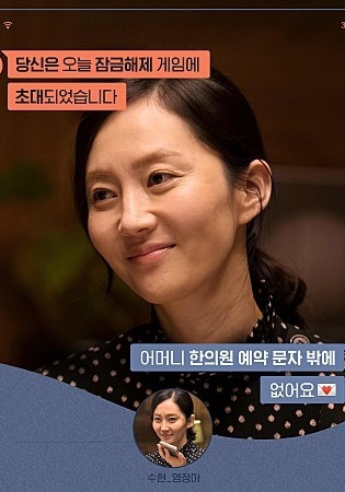 그의 아내 수현은 남편에게 존댓말을 하고, 시어머니를 모시고 사는 전업주부로 답답한 일상에서 벗어나고픈 마음을 문학반 강좌를 듣고 블로그에 글을 쓰는 것으로 달래고 있다. 게임 도중 받은 요양원 홍보 메세지와 그녀의 글을 좋아하는 팬의 문자로 남편에게 추궁을 받지만, 남편의 충격적인 비밀을 알게 되며 폭발한다.