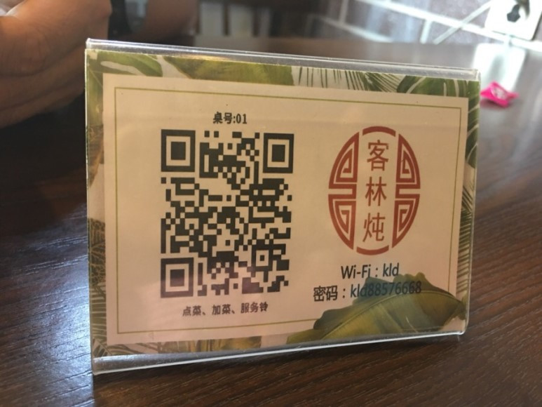 요즘 중국 식당에서 흔히 볼 수 있는 QR 코드 메뉴판이다. 위쳇에서 스캔하면 메뉴판이 나오고 주문, 계산 모두 그 안에서 간단하게 해결된다.