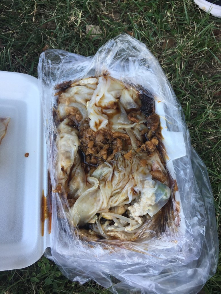 자그마치 2시간 줄을 서서 포장해 온 창펀(肠粉)이다. 가게 안에는 앉을 자리도 없어서 주변 공원 풀밭에 쭈그리고 앉아 먹었다. 근데 먹고 나서 아들과 나는 막 남편한테 화를 냈다. 왜 이렇게 맛있는 걸 하나밖에 안 시켰느냐고! 사실 우리 둘은 적어도 두 개는 포장해 가자고 했었는데 대장이 여긴 맛있는거 천지니까 다른 맛있는 거 들어갈 배는 좀 남겨 두자고 말려서 포기했는데ㅜㅜ 이곳 창펀(肠粉)이 주하이(珠海)에서 먹던 창펀(肠粉)과 다른 점은 안에 숙주나물과 풍성한 해물이 들어간다는 것! 사진에는 다진 고기와 계란, 숙주 나물 정도만 보이지만, 저 아래는 살이 통통한 새우와 바닷내음 물씬나는 굴이 듬뿍 들어 있으니 어찌 맛이 없을 수가 있겠는가!