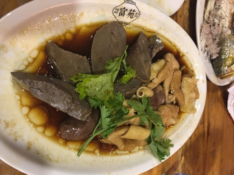 이 요리는 거위간, 내장등을 볶아낸 요리. 잡내없고 쫄깃하다. 비린내나는 어설픈 푸아그라보다 훨씬 낫다.