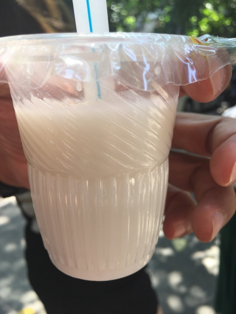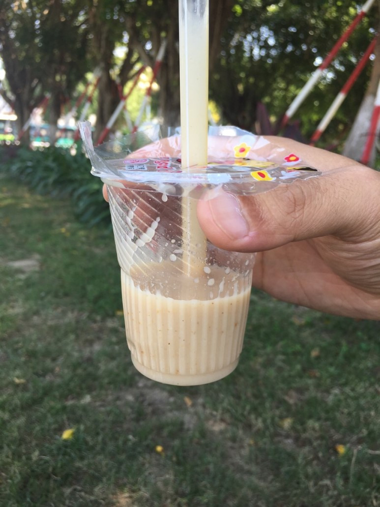 호텔 조식은 아주 간단하게 조금 먹고 이곳에서 맛있기로 제일 유명하다는 창펀(肠粉)집으로 향했다. 창펀(肠粉)은 쌀가루로 얇게 만든 전병 안에 고기와 달걀, 채소 등을 같이 넣어 쪄내는 요리로 광동지역 사람들이 아침식사로 즐겨먹는 음식이다. 도착하니 줄이 얼마나 길던지 남편이 줄을 서고, 아들녀석과 같이 주변을 돌아다니며 이것저것 구경도 하고 음료수도 사 마셨다. 위 첫번째 음료는 녹두로 만든 것, 두번째는 아몬드, 세번째는 땅콩을 갈아 만든 건데 많이 달지도 않아 내 입맛에는 딱이다.