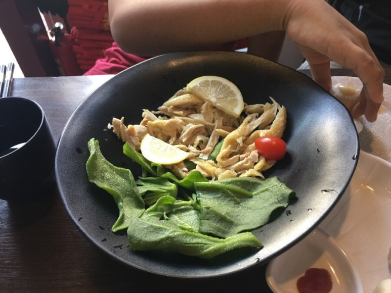 첫번째 도착한 요리는 큼지막한 조기. 뭐야 이거! 아무 양념도 안 된 것 같은데 이게 맛이 있겠어?? 게다가 따뜻하지도 않은 게 굽지도 않은 것 같다. 별 기대없이 젓가락으로 조금 먹어봤는데 맛있다! 익히고 다시 훈제하며 말린건지 살짝 양념향이 나기만 할뿐 다른 재료는 보이지 않는다. 차가운 생선요리는 먹어 본 기억이 없는데 생선을 이렇게도 먹을 수 있구나 싶었다.