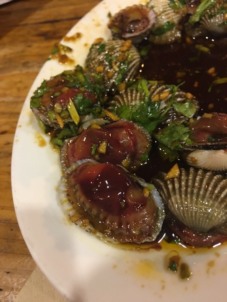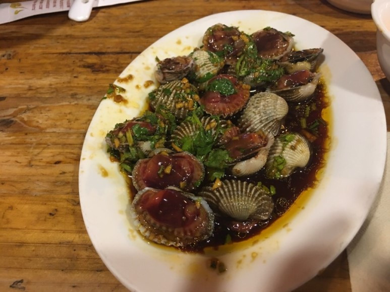 이건 양념된 꼬막 요리. 어쩜 엄마가 집에서 해주던 양념이랑 맛이 비슷해서 놀랐다. 알면 알수록 중국 남쪽 지방에는 한국과 비슷한 음식들이 많다. 그런데, 꼬막도 익히지 않은 생것!!! 조개를 날로 먹는 건 처음이었는데 맛은 역시 좋았다.