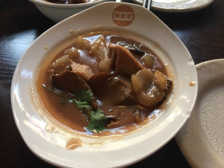 남편과 내가 주문한 해삼버섯탕 요리와 전복요리가 나왔다. 생각보다 전복이 크다. 밥 한 그릇과 볶은 청경채도 함께 나왔다. 흰 쌀밥에 저 갈색 양념을 쓱쓱 비벼서 먹는 거다. 맛은... 정말 환상!!! 지금껏 한번도 먹어본 적이 없었던 맛이니 뭐라 설명할 길도 없다. 도대체 양념 베이스가 뭔지도 감이 안 잡힌다. 그리 많이 짜지도, 또 많이 달지도 않은데다 조미료 감칠맛은 아닌데 빈틈이 없는 맛. 탕 안의 재료는 물론이고, 양념 한 방울도 안 남기고 밥에 비벼 깨끗이 비웠다.