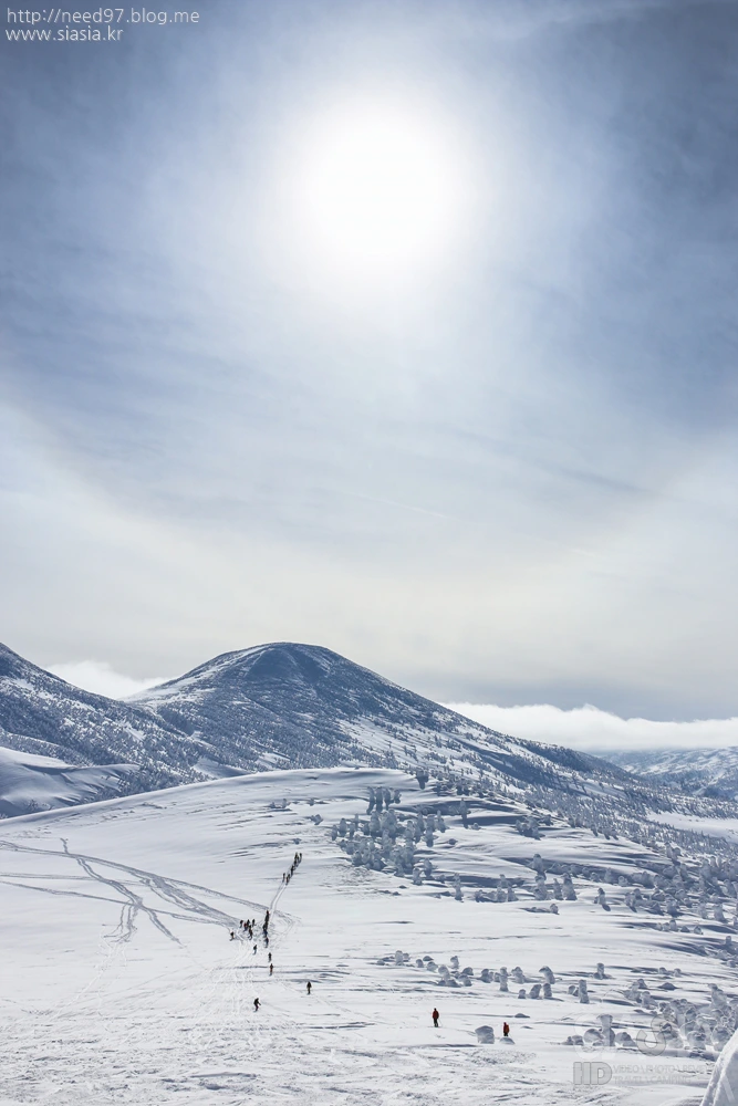 태양을 바로 바라보는 하코다산의 수빙들...
