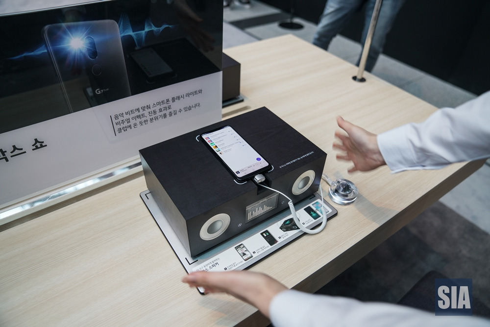 특히 G7 씽큐의 붐박스 기능은 스마트폰 전체를 이용한 사운드 효과도 놀랍지만 그 이상으로 다른 매질에 그 진동을 전달하여 사운드 효과를 극대와 하고 있습니다.