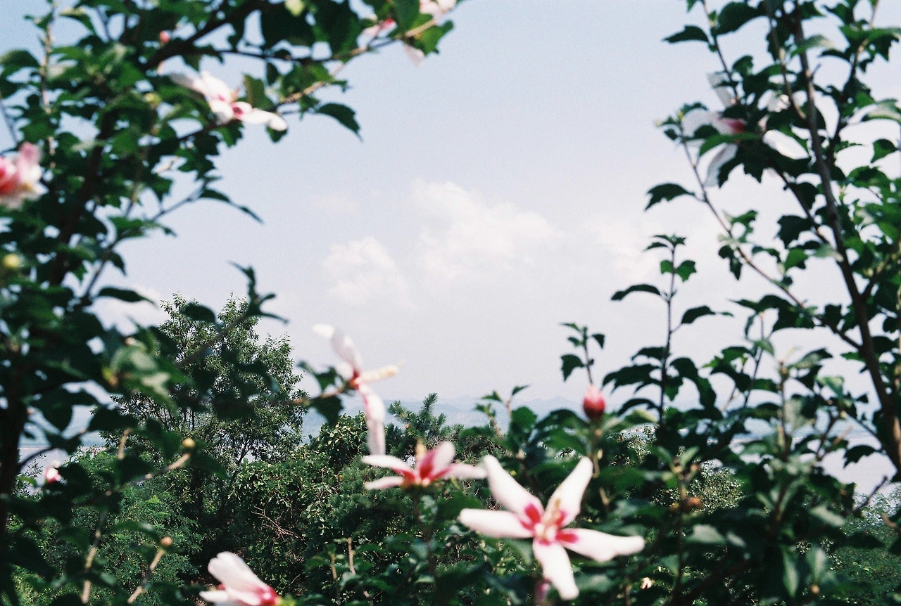 강화 평화전망대에서 바라 본 우리나라 무궁화와 북한에 떠 있는 구름,