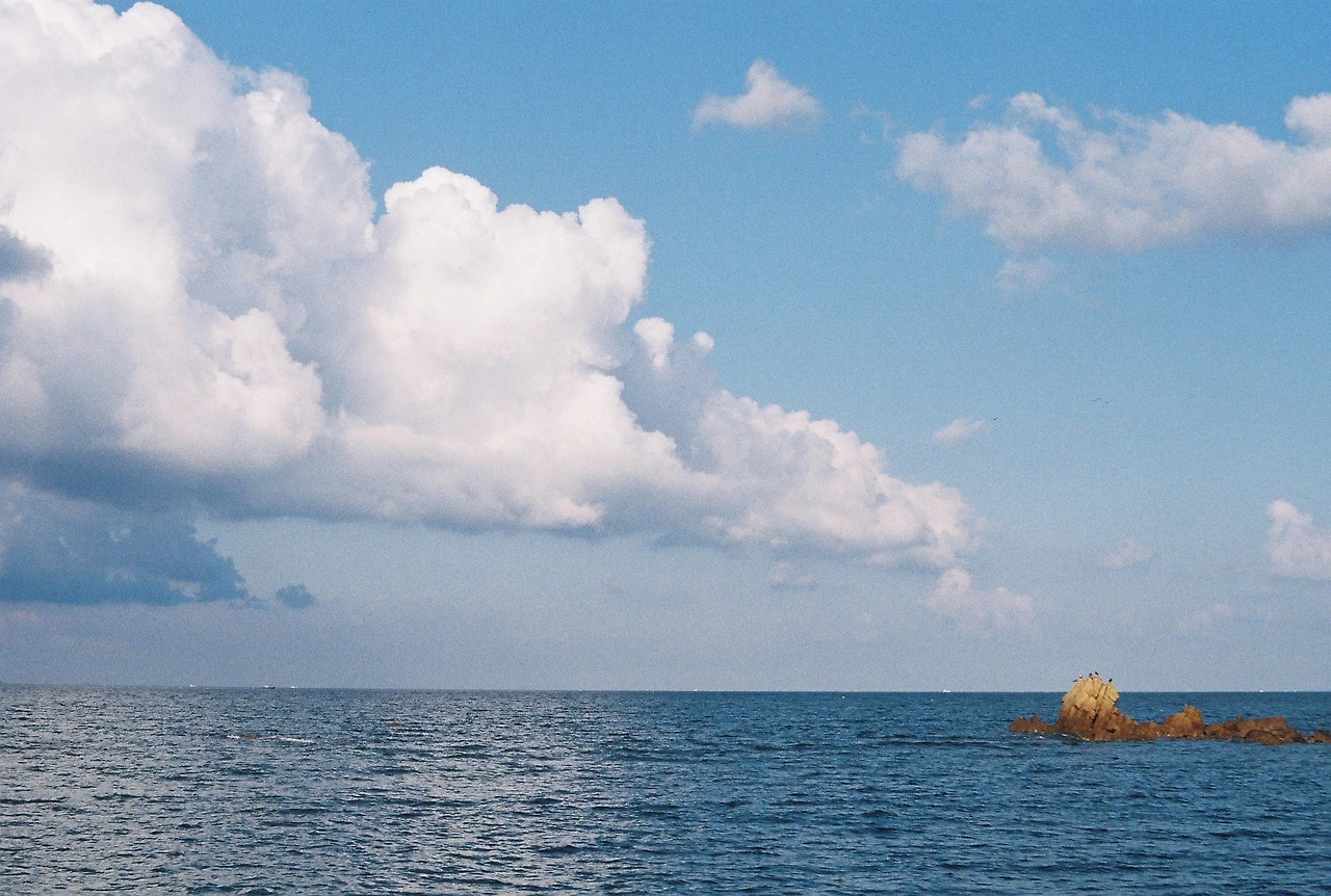 캠핑 다음날 아침 크~구름하고 바다 너무 예쁘잖아.