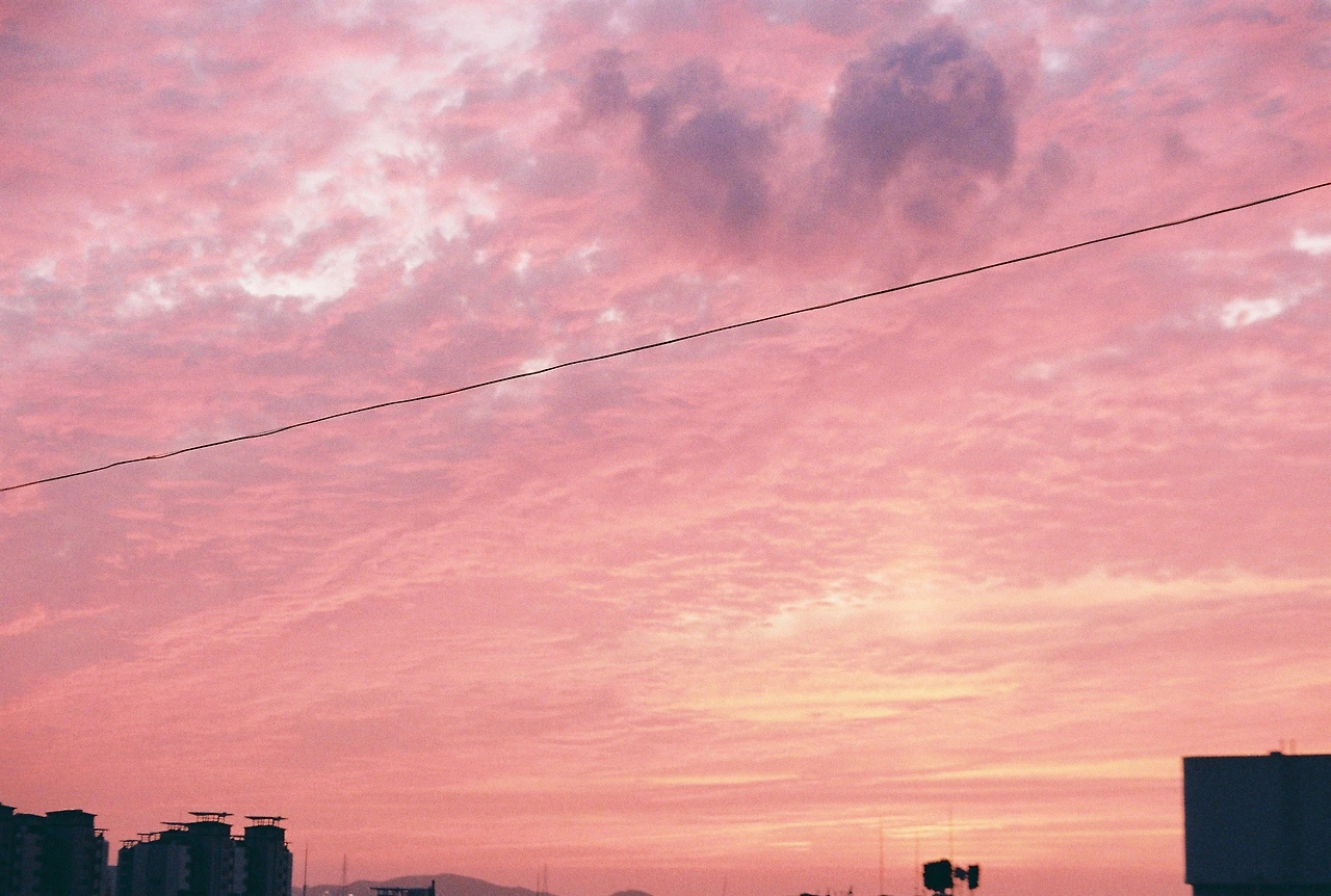 분명 아주 붉은 노을이었는데, 필름카메라는 분홍 노을로 나왔다. 붉게 찍히길 바랬는데..