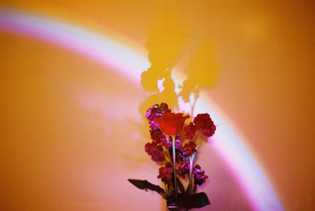 무지개등을 장미, 스토크에 비추기