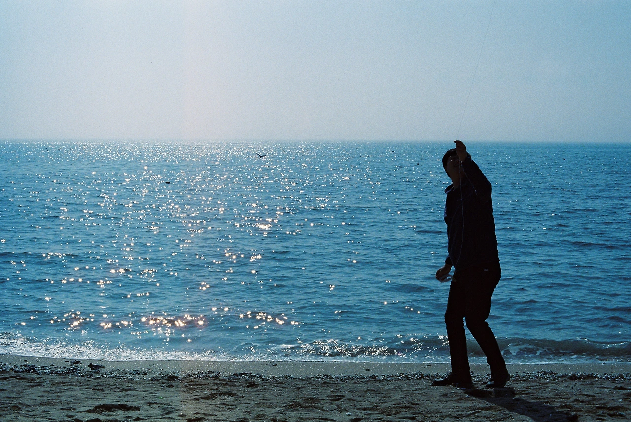 친구가 연 날리다가 바람을 못 타고, 바다에 빠트렸다. 주위에서 사진 찍는 여성분이 "바다에 연이 있어!"