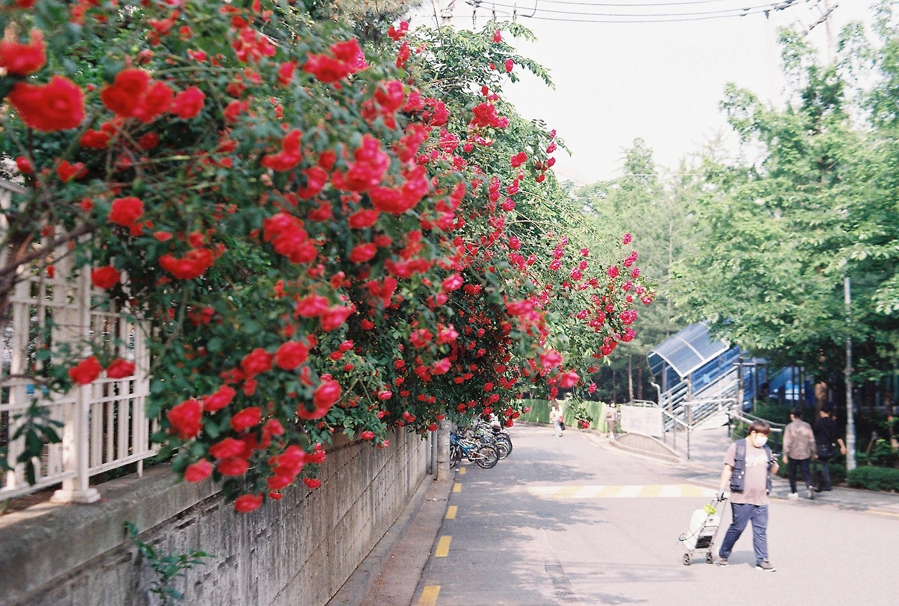 코닥 컬러플러스200 제일 저렴한 필름이었는데 가격이 많이 올랐다. 6,500 원. 이 정도 가격이면 코닥 골드200을 쓰는 게 더 나을 거 같았다. 그런데 필름카메라 카페에서 코닥 프로이미지 100 가격이 지금 상황에선 좋아 보인다는 제목을 보게 됐다. 그런 필름이 있어? iso 100이네? 색감 좋네? 요즘처럼 햇빛 쨍하고, 장미꽃이 필 때 야외에서 찍으면 잘 나오겠다는 생각에 구입했다. 5롤에 31,500 원. 코닥 컬러플러스 200 보다 5롤 따져보면, 200 원이 저렴하다. 앞으로 주력 필름은 코닥 프로이미지 100으로 결정했다. 평소대로 찍어 본 결과 흔들린 사진이 많았다. 프로이미지 100을 찍을때는 신중하게 카메라를 잡고, 찍어야겠다. 흔들린 사진 때문에 속상해.