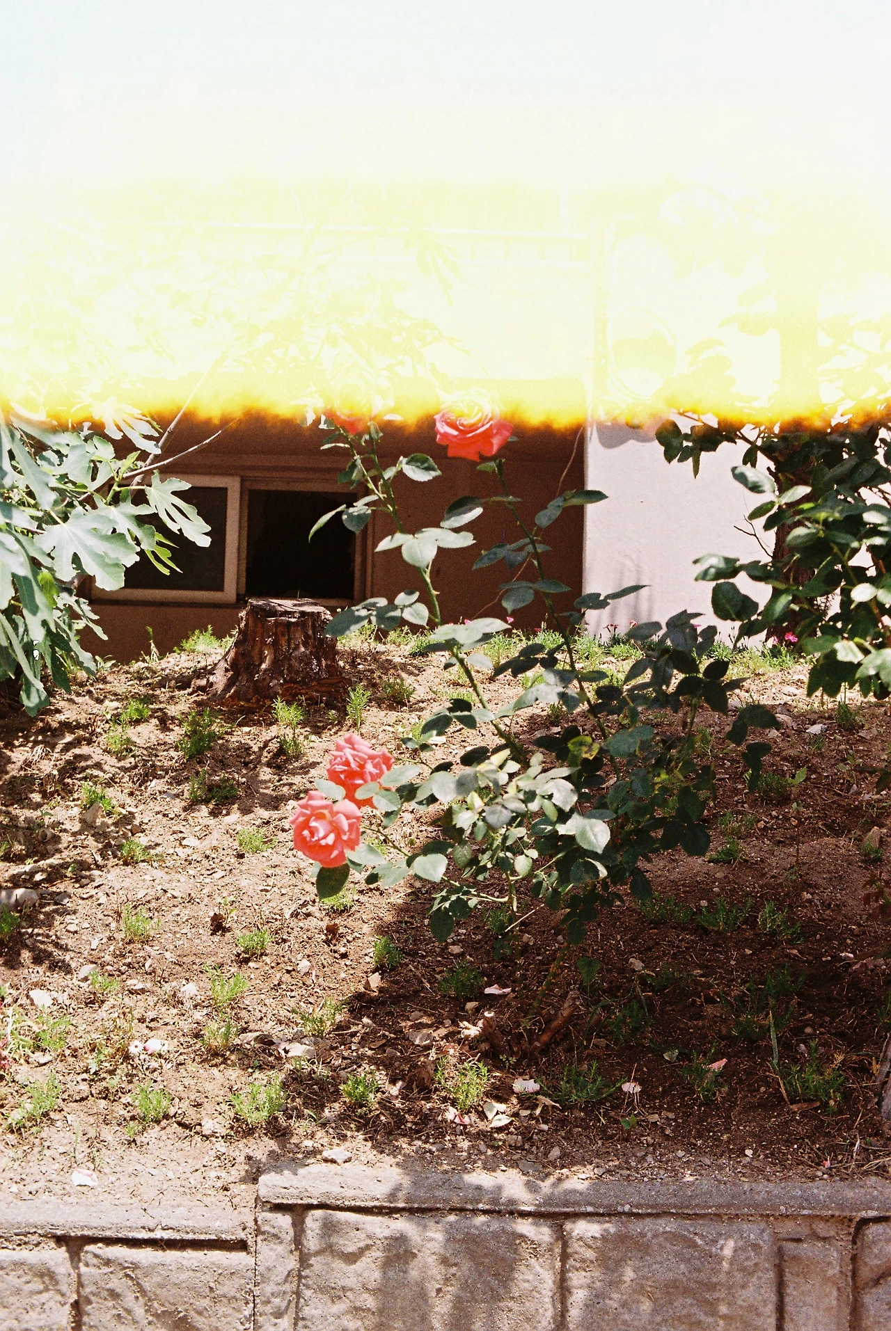 주택 담벼락의 장미