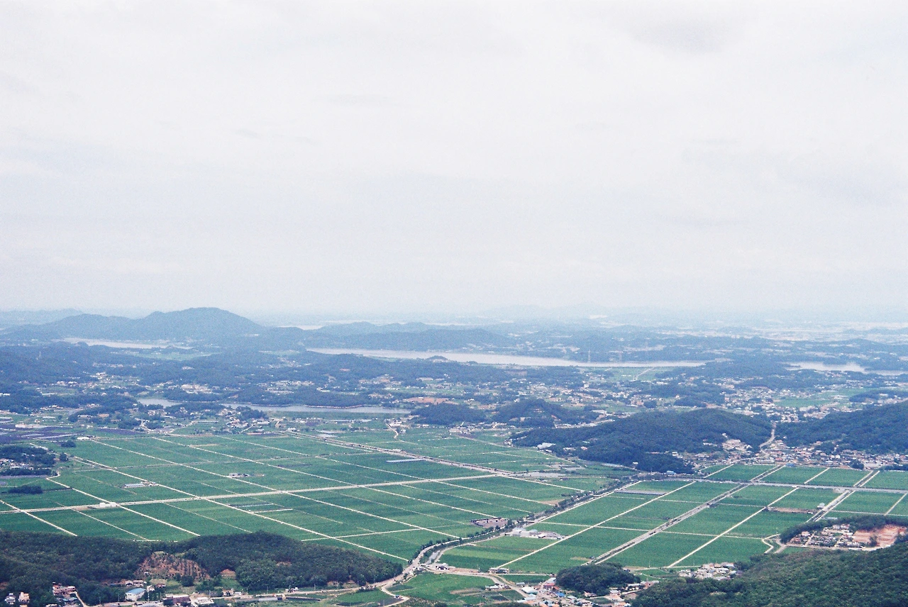 친구랑 마니산 등반. 정상에서 바라본 시선. 서울에 있는 인왕산, 북악산 정상에서 밑을 바라보면, 답답한 건물뿐인데, 마니산 정상은 초록 초록한 시선에 눈이 시원해진다.