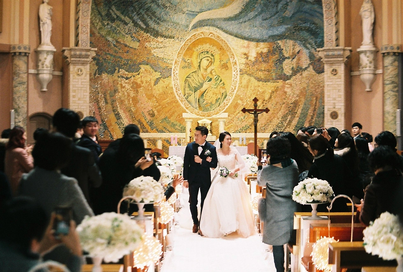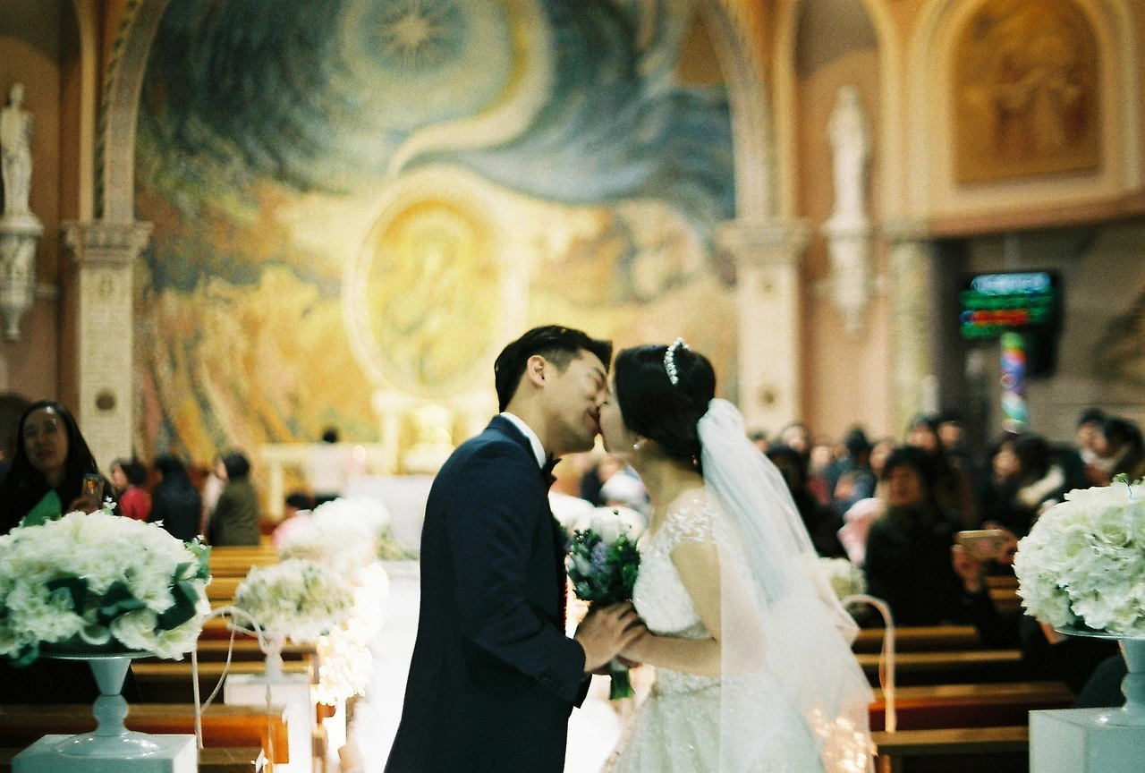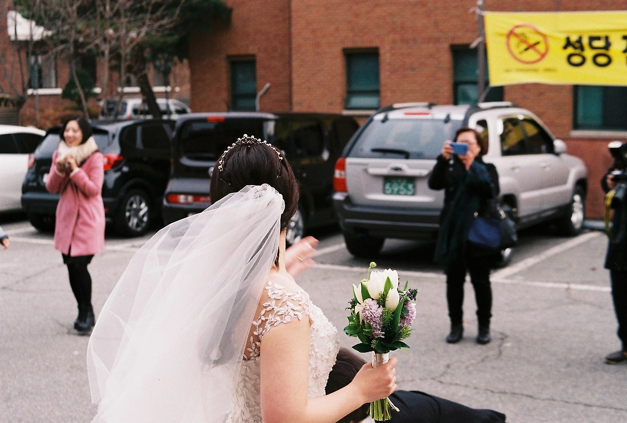 필름 카메라를 구입하고 처음으로 웨딩 사진을 찍었다. 결과는 거의 다 흔들렸다. 결혼식장은 대체적으로 어둡고 신랑, 신부가 움직이기 때문에 찍기가 어렵다. 감도 200 필름을 사용했으니, 더욱 그랬을 것. 이때 사실 감도랑 조리개에 대해서 잘 몰라서 A모드 조리개도 1.4로 하지 않고, P모드 조리개 16으로 고정으로 찍었다. 실내 웨딩 사진을 찍을 때는 감도 400, 800, 1600 필름과 삼각대를 사용해야 하는 걸 깨달았다. 스트로브 사용한 사진은 선호하지 않는다. 개인적으로 웨딩에 가장 적합한 필름은 포트라 800, 씨네 스틸 800이라고 생각한다. 하지만 가격이 너무 비싼 것! 2019년 3월 포털사이트 최저가 가격 포트라 800 11,900원, 씨네 스틸 800 19,900원.