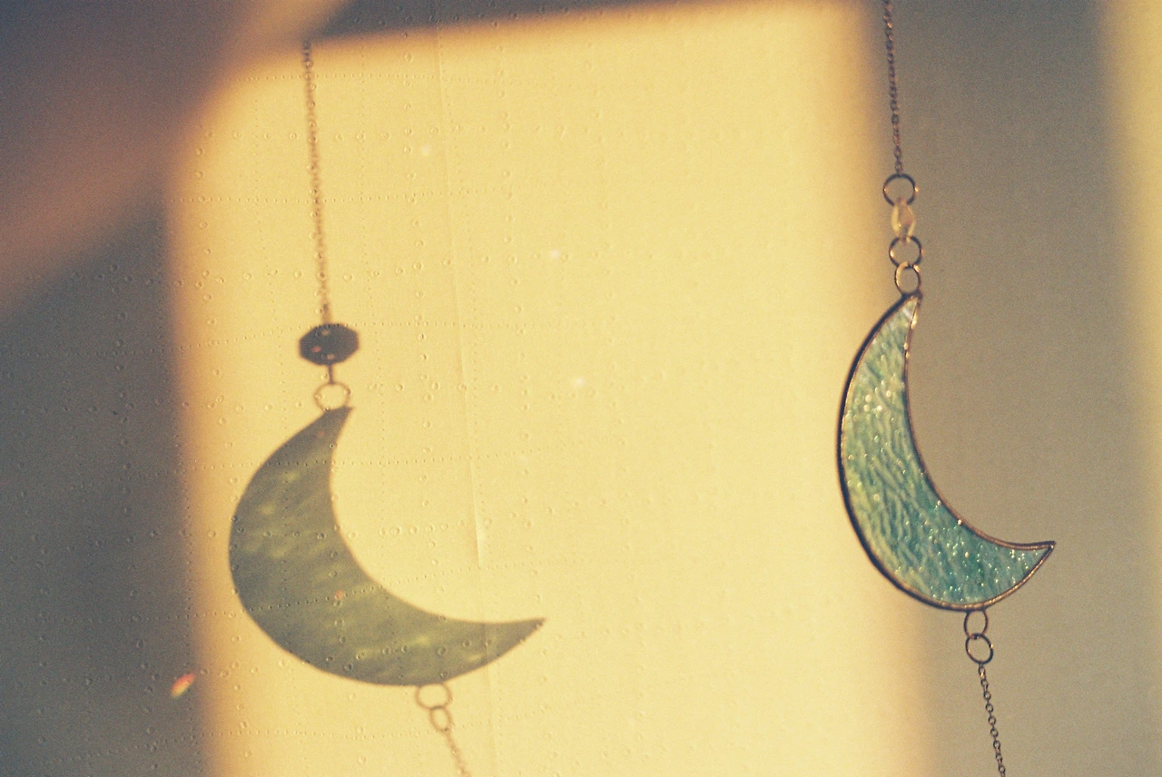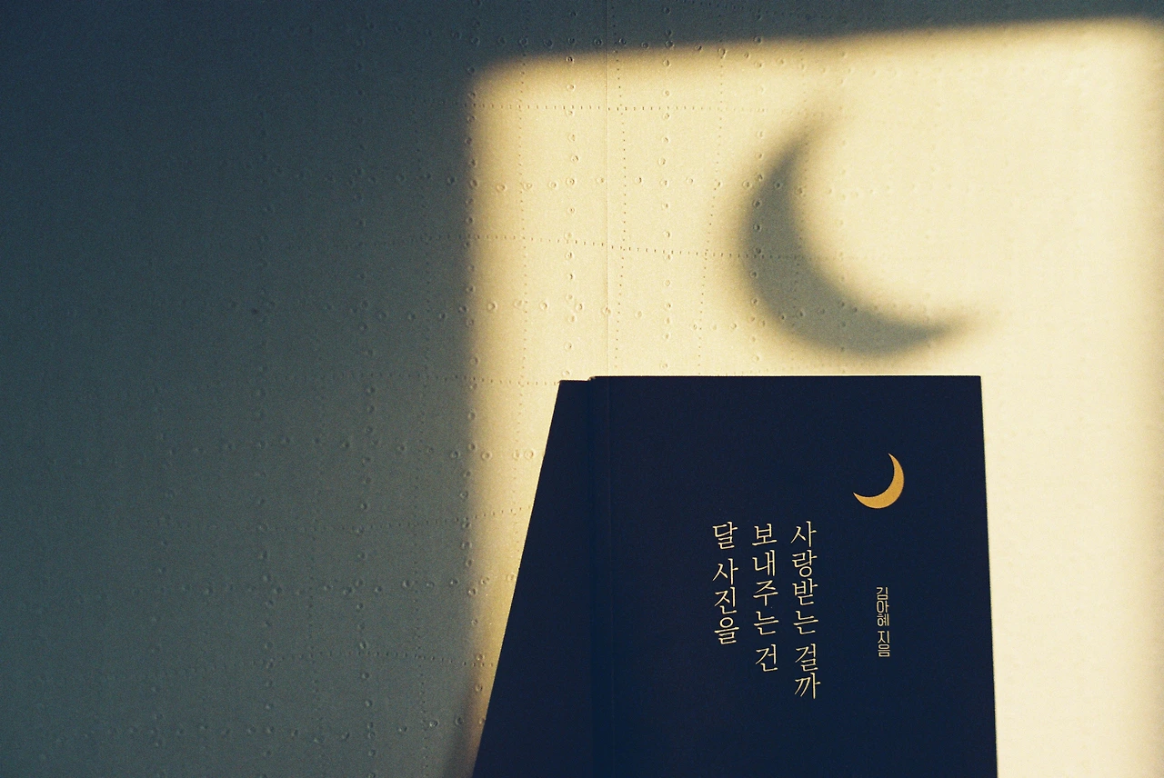 달을 좋아하는 사람에게 선물 주려고 했던 책과 달 모양 스테인드글라스.