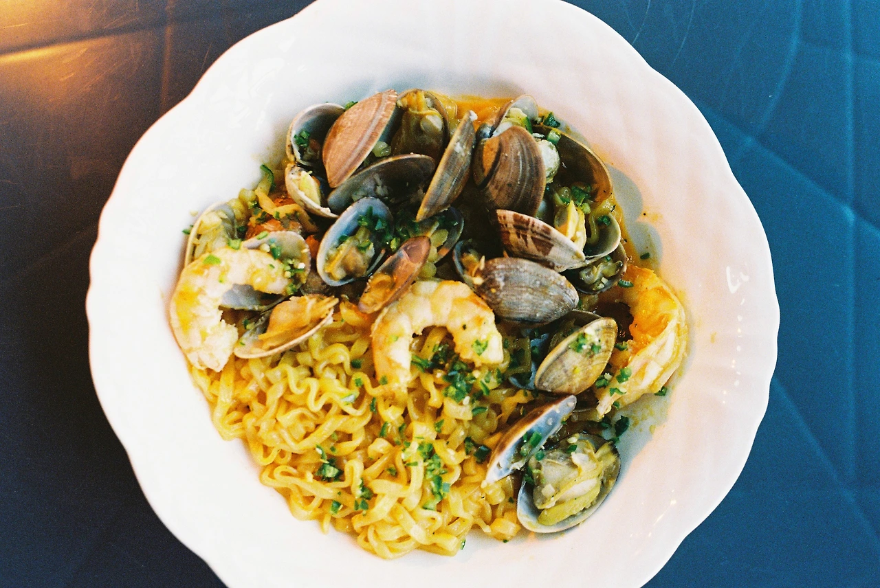 크림진짬뽕에 바지락이랑 새우 넣어서 먹었다. 파슬리가 없어서, 청양고추를 얇게 썰어서 데코. 얇게 썬, 청양고추가 목에 걸려서 캑캑 되면서 먹었다. 청양고추는 얇게 썰지 말쟈!