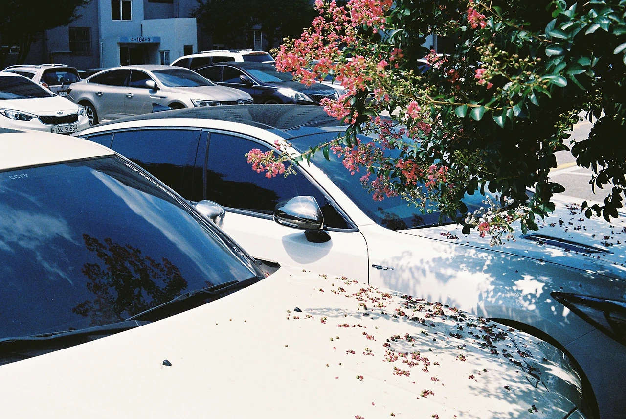 집 앞에 배롱나무가 있는데, 주차된 차에 항상 저렇게 테러를 해놓는다. 차 주인은 짜증 나겠지만, 나는 와 예쁘다~ 소리가 나온다. 무슨 예술 작품 같다. 내일은 어떤 차에 배롱나무꽃이 떨궈져 있을까~