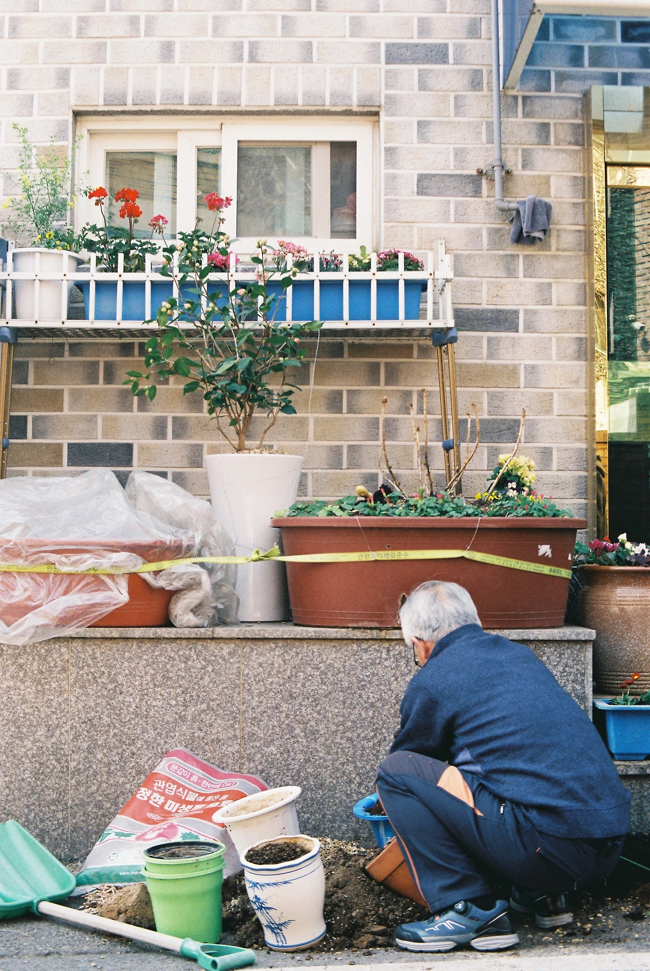 빌라에서 어르신이 화단을 만들고, 꽃으로 꾸미고 계셨다. 꽃을 보면 가만히 못 있는 성격. 사진을 찍거나, 예쁘다고 말을 한다.