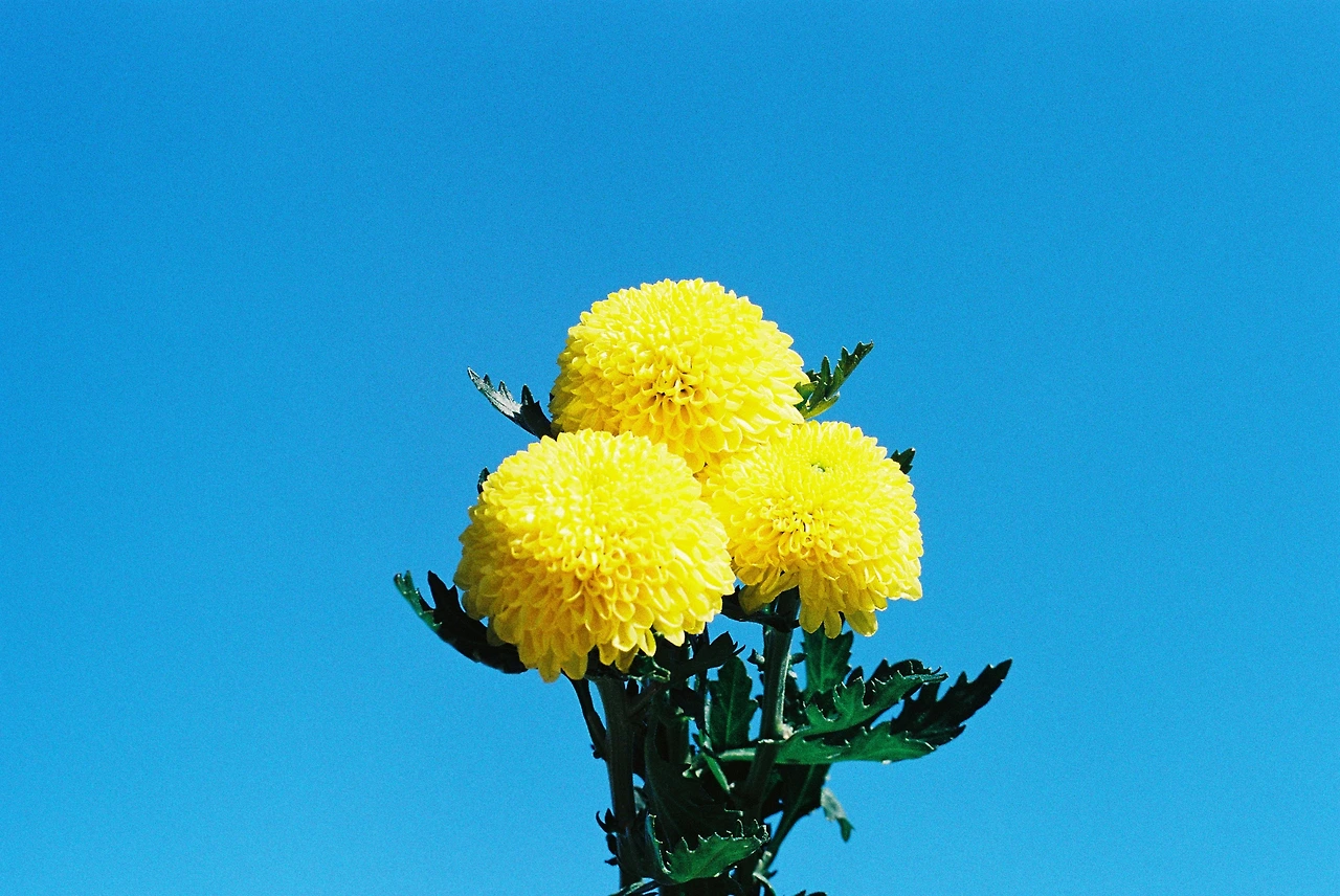 구름 없는 파란 하늘에 노란 폼폰 띄워보기