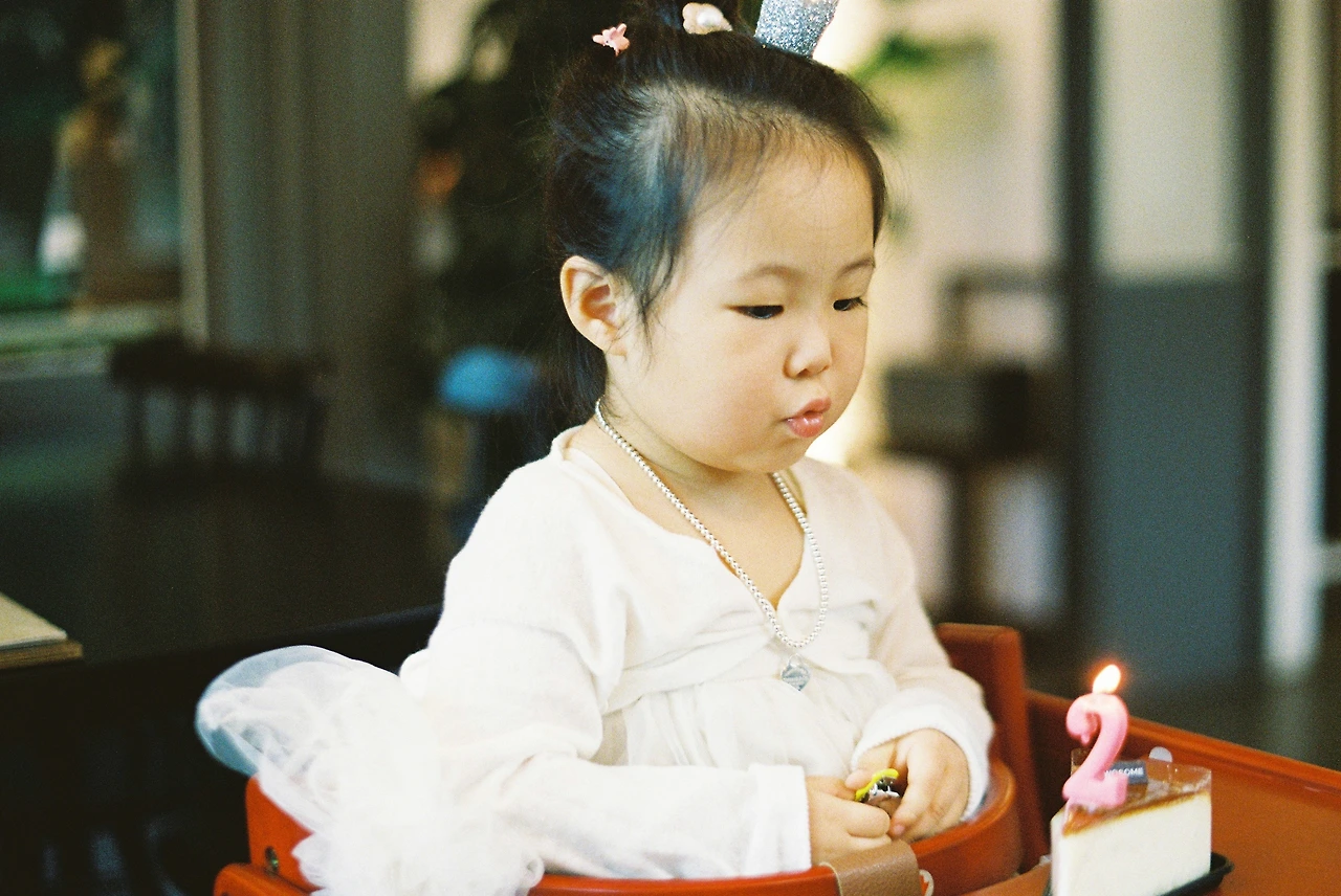 린이 두돌. 후~바람을 부는데 초가 안 꺼진다. 귀여워!