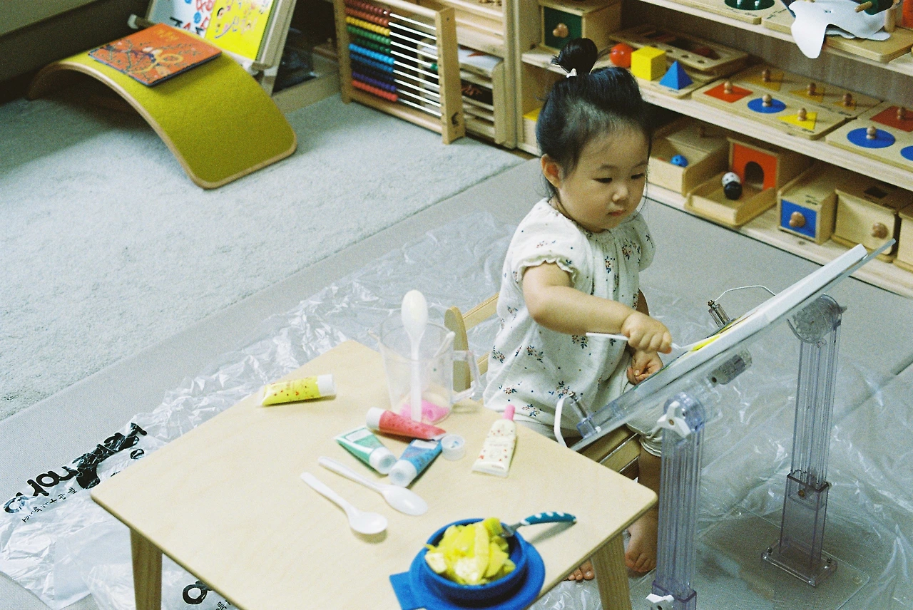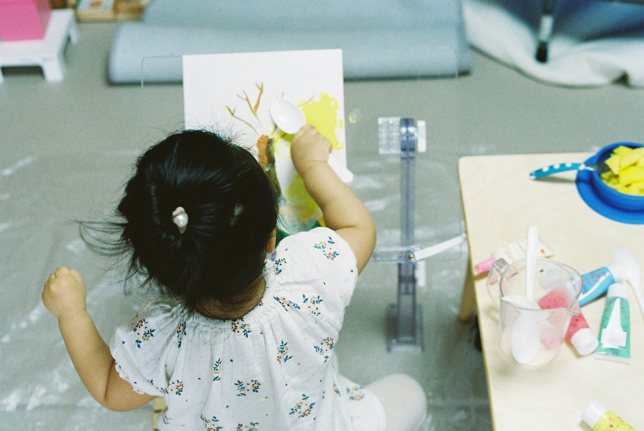 린이 보러 갔는데 첫 마주친 장면이 미술을 예술 하는 중