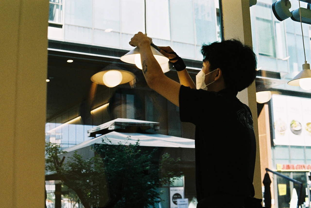 필름카메라로 일 하는 모습을 찍었다.