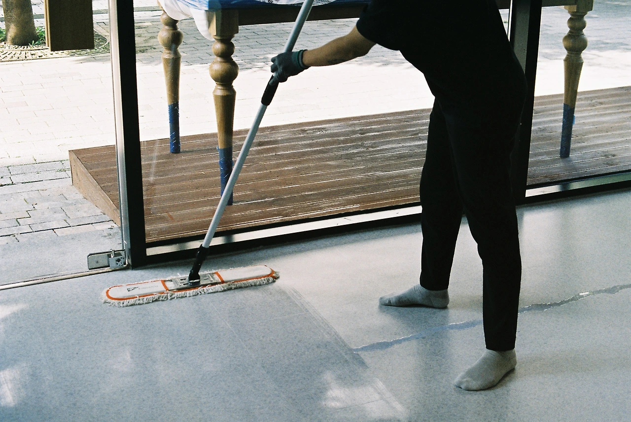 바닥 왁스 코팅 중