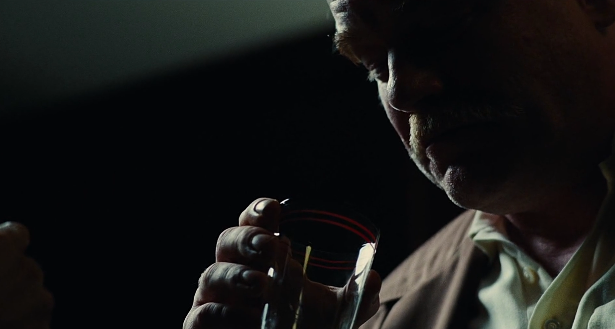 가장 먼저 언급하게 될 클로즈업은 그야말로 관객을 질식시킬듯 옥죄는 듯한 밀도를 가진 클로즈업이다. 또한 그러한 클로즈업들을 배치하는 방식과 탁월한 대화의 리듬을 만들어낸 작법은 거의 완벽에 가깝다. 본격적으로 프로세싱 장면을 살펴보기 전에 직전 장면을 함께 볼 필요가 있다. 프레디가 랭커스터를 위해 특제 술을 제조하는 장면이다. 사실상 랭커스터와 프레디 단 둘이서만 공유하는 술이라는 소재가 매개가 된 이상 이 장면 또한 프로세싱 시퀀스의 일부로 본다고 하더라도 무리는 없을 것 같기도 하다.