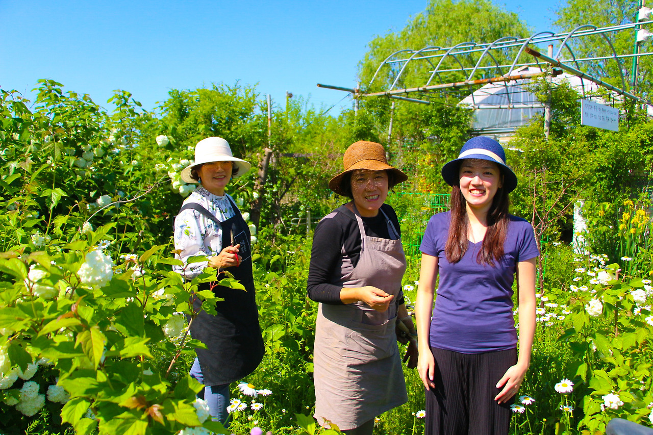 저는 주로 체험 학습을 맡고 있어요. 체험 학습은 아이들을 대상으로 하고 원예, 모래, 숲 체험이 있는데 12개월 과정이고 계절에 따라 체험하는 것들이 달라요. 아이들도 그렇지만 어른들도 별로 여가를 즐길 만한 게 많이 없잖아요. 원데이 클래스라고 해서 가드닝, 꽃꽂이를 어른들과 함께하기도 해요. 그리고 모네 정원 블로그를 제가 맡아서 운영하고 있지요.