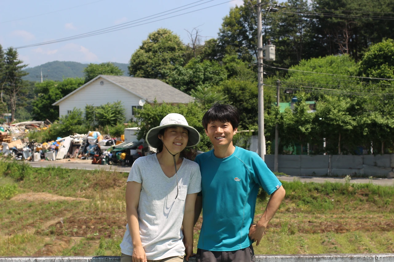 두 분의 부탁으로 같이 사진을 찍기 위해 다시 밭으로 나왔다. 신범씨가 카메라를 설치하고 타이머를 맞추고 있었다. 훗날 사진전에 초대돼서 오늘 찍은 사진을 보게 된다면 감회가 새로울 것 같다. 6월에 내리쬔 따뜻한 햇볕과 온기가 한동안 기억날 것 같다. 이제 돌아가서 두 분의 이야기를 재밌게 풀어내는 일만 남았다.