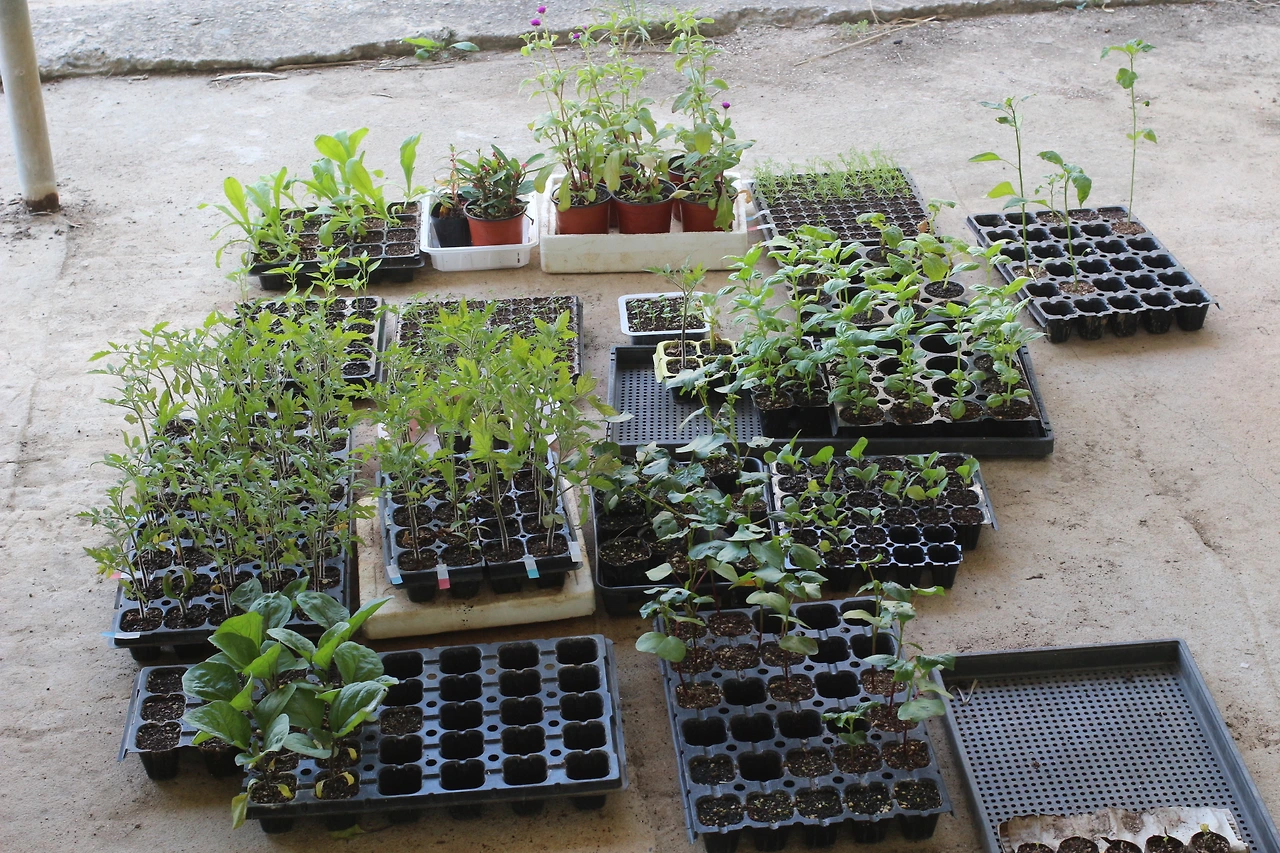 차에서 내리니 여러 가지 모종들이 보인다. 몇 해 전에 텃밭 농사를 지었던 경험이 있기에 몇몇 낯익은 모종들이 눈에 띄었다.
