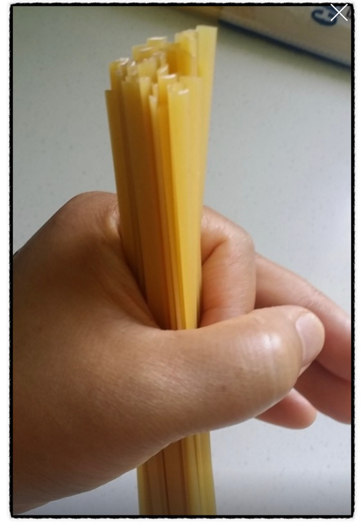 * 참고로 스파게티면 1인분은 100g, 검지와 엄지로 면을 둘러 잡았을 때, 검지 끝이 엄지 손가락의 마디에 닿을 정도입니다.