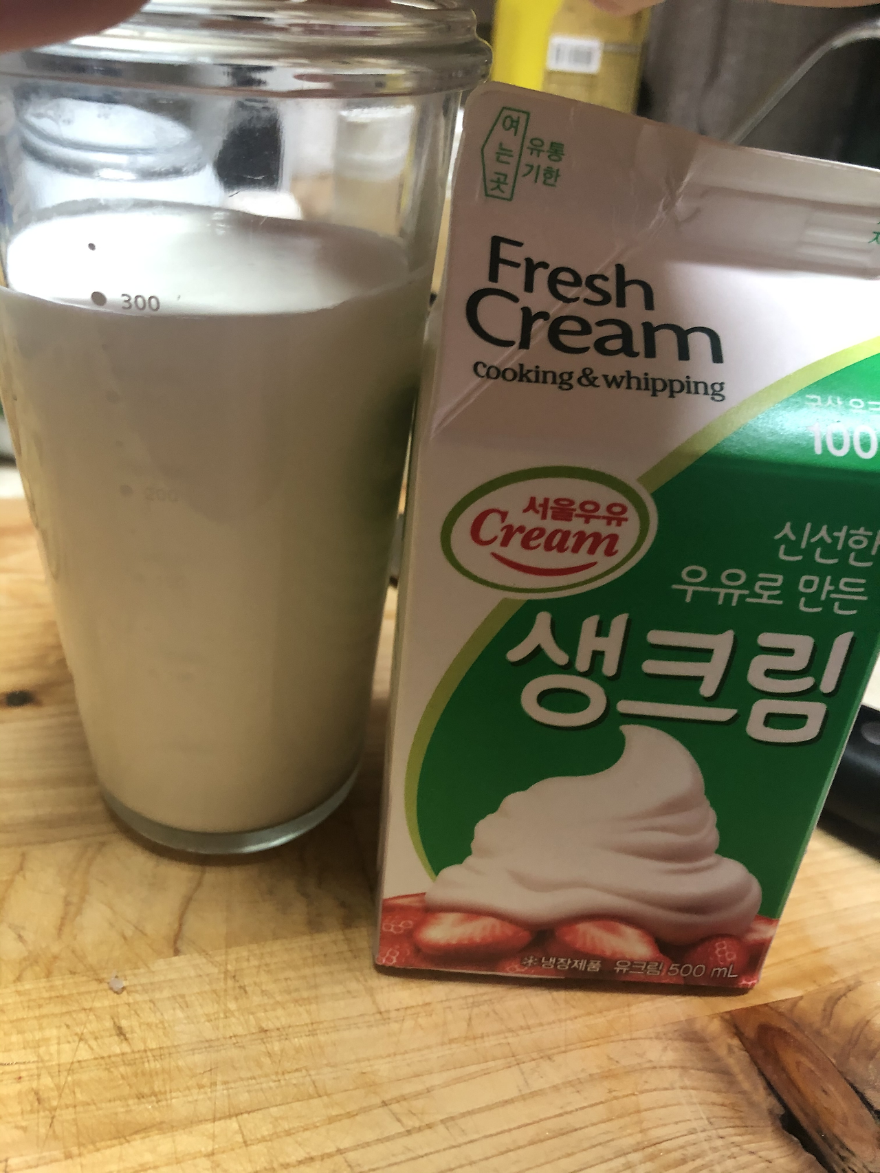 *저는 생크림 300ml, 우유 400ml 넣었습니다.