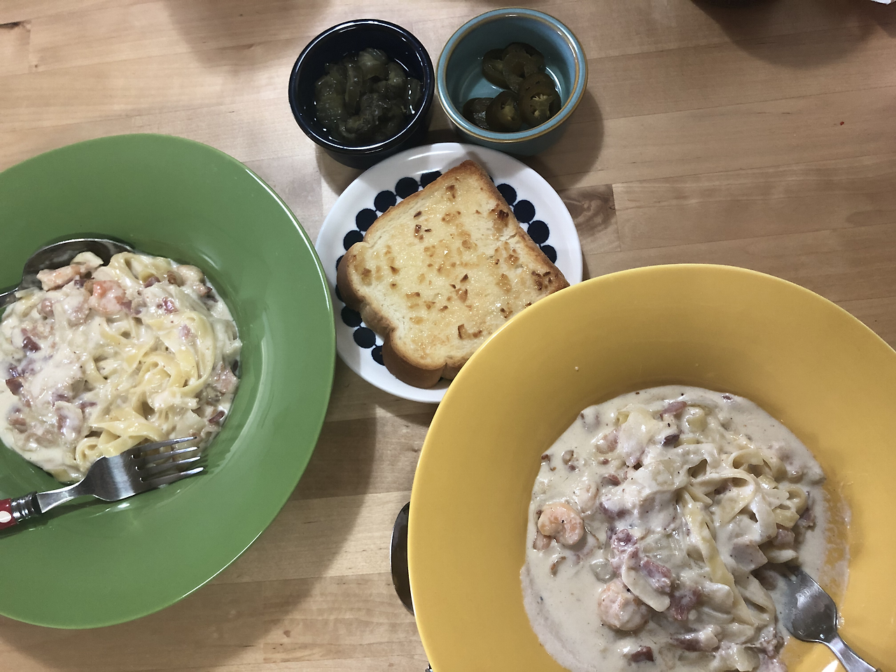이번에는 올해 여덟 살 아들과 둘이서 먹으려고 면 125g, 크림소스 700ml로 만들어 보았습니다.