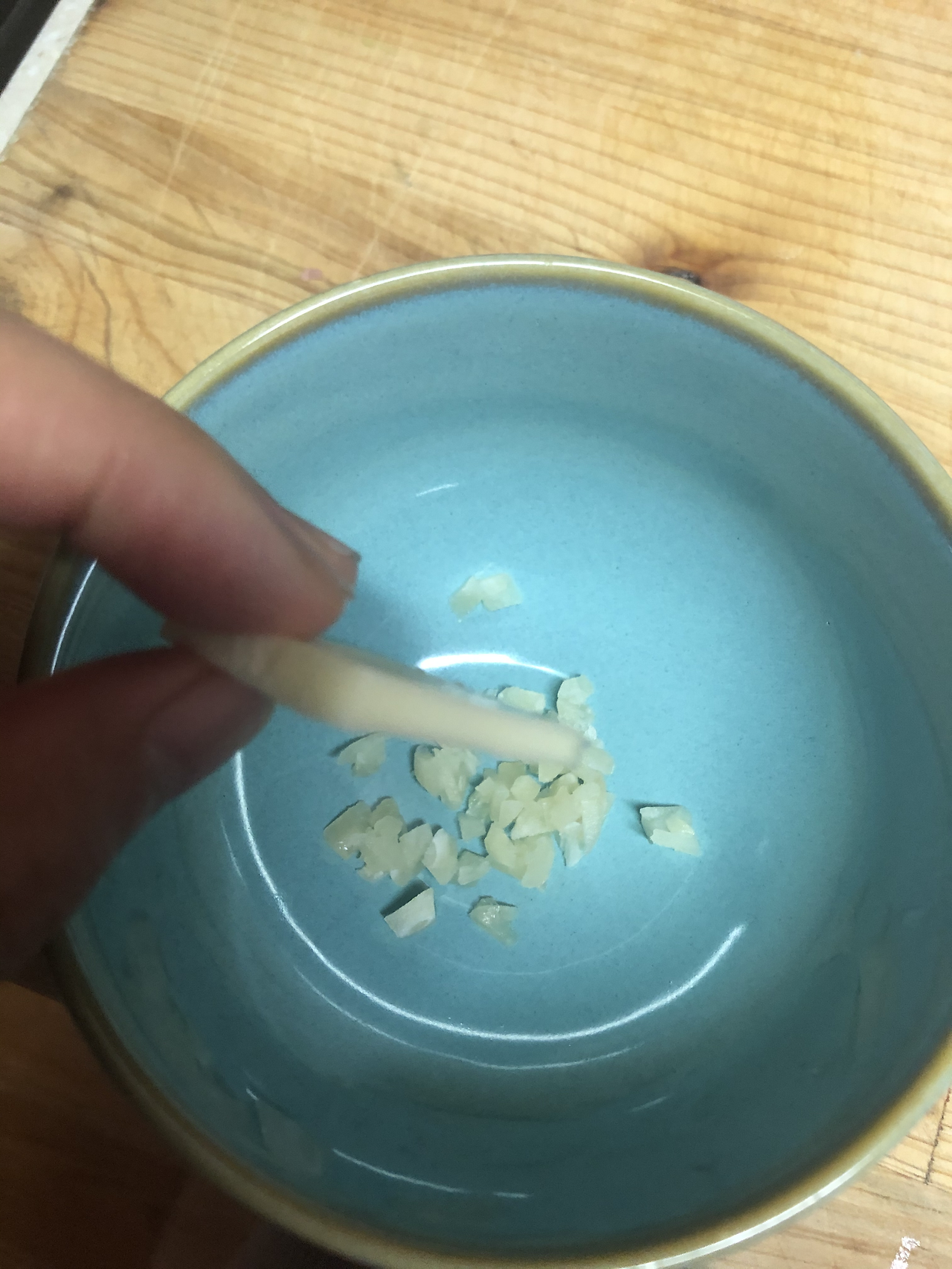 1. 버터 약간에 다진 마늘 1, 올리고당 1/2술을 넣고 전자레인지에 1분 가열합니다.
