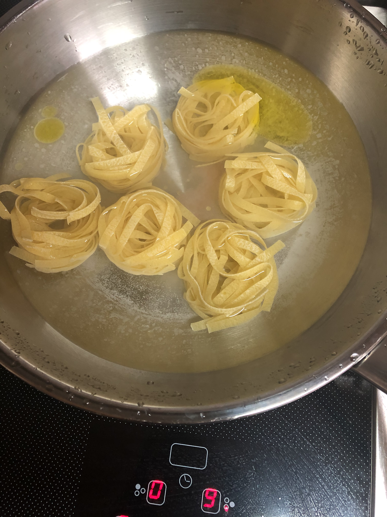 먼저 냄비에 물, 올리브유, 소금 1/2술을 넣고 면을 삶습니다. 면은 강불에서 8~9분 정도를 삶고, 크림소스로 옮겨 1~2분 정도 더 익힙니다.