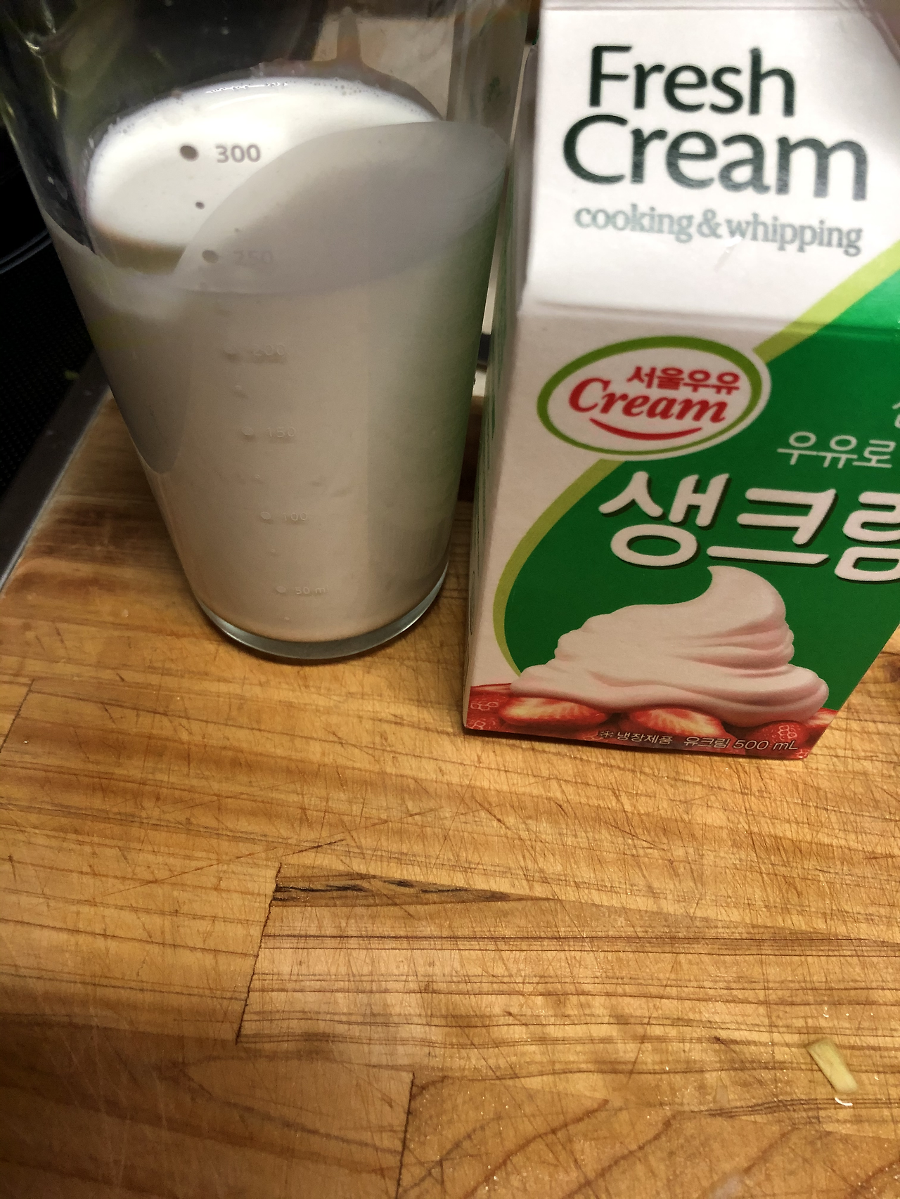 생크림으로 파스타를 하고 나면 대개 크림이 남습니다. 그 크림을 처치하는데 유용한 요리가 있습니다.