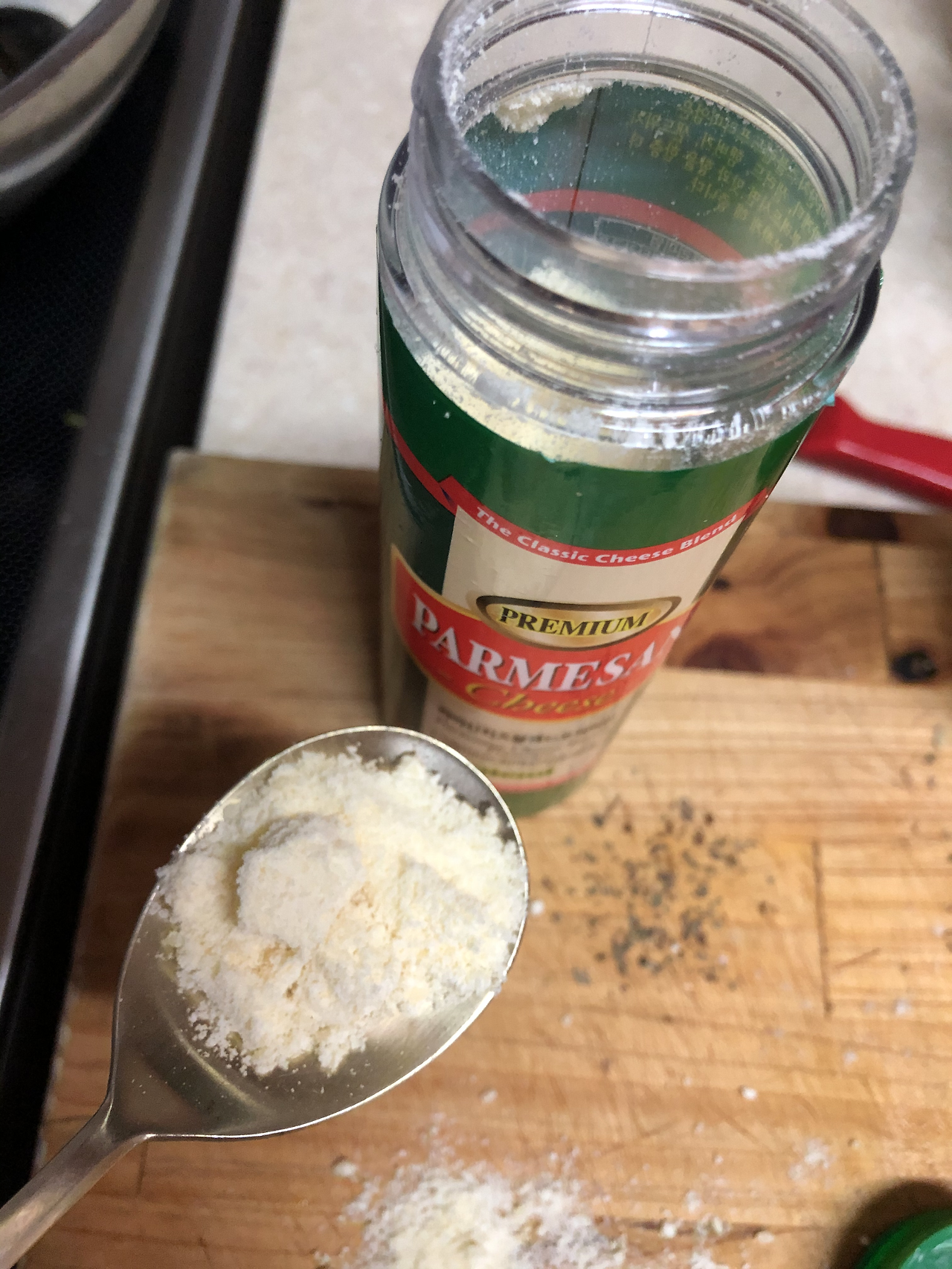 4. 허브솔트, 바질, 후추 등 추가하고 싶은 향신료와 파마산 치즈를 넣습니다. 이 중에서 집에 있는 것만 넣으셔도 무방합니다.