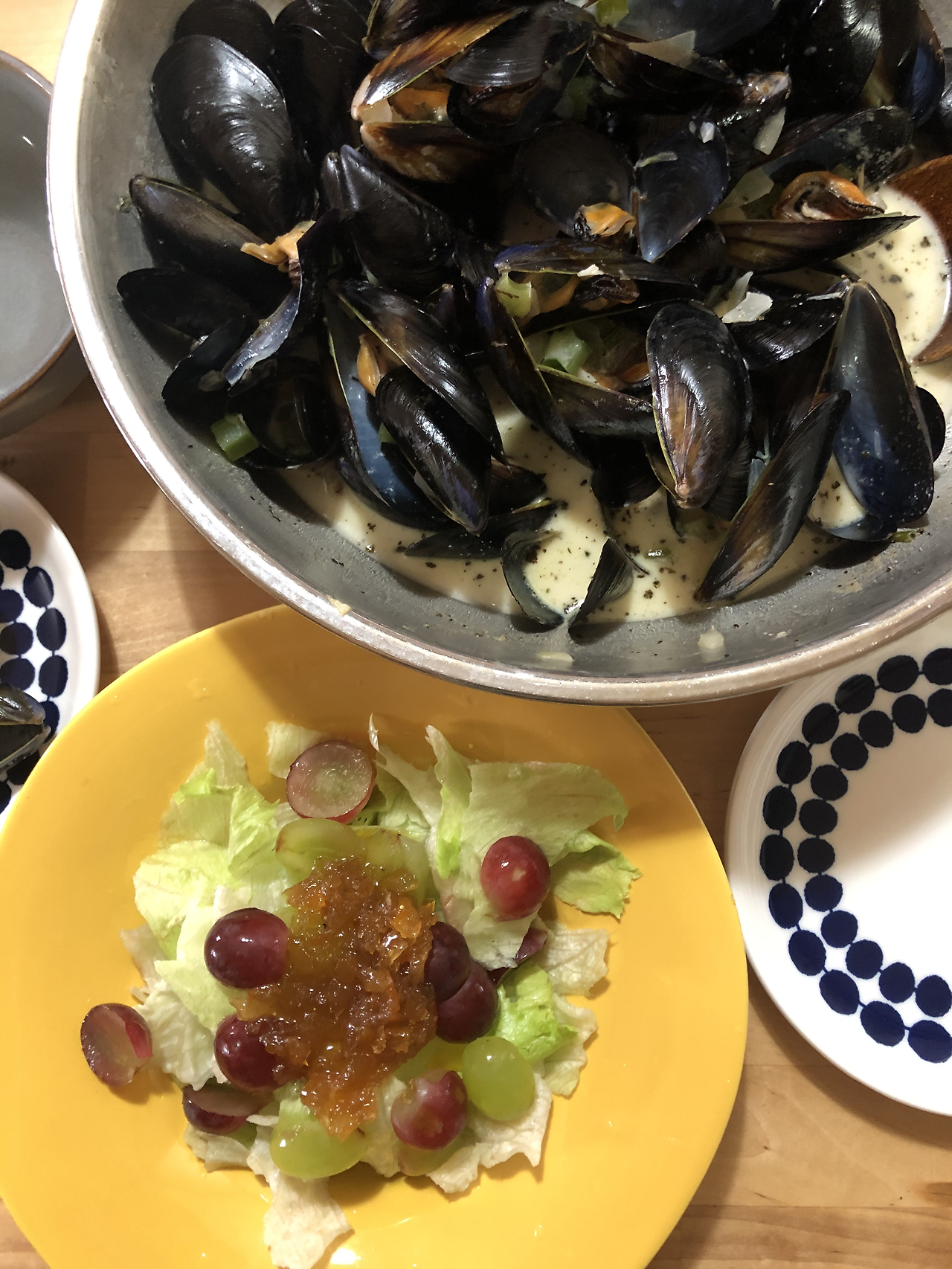 김치찌개의 김치, 돼지고기가 기깔나게 어우러지듯이, 홍합찜도 그렇습니다. 다소 향이 강한 홍합, 샐러리, 크림의 조합이 기가 막힙니다. 게다가 이 요리의 크림은 크림소스 파스타의 느끼함과는 또 다른 ‘어른 맛’을 냅니다. 날이 더 따뜻해지면 홍합의 계절도 끝나죠. 지금 맛있게 즐겨 보겠습니다.