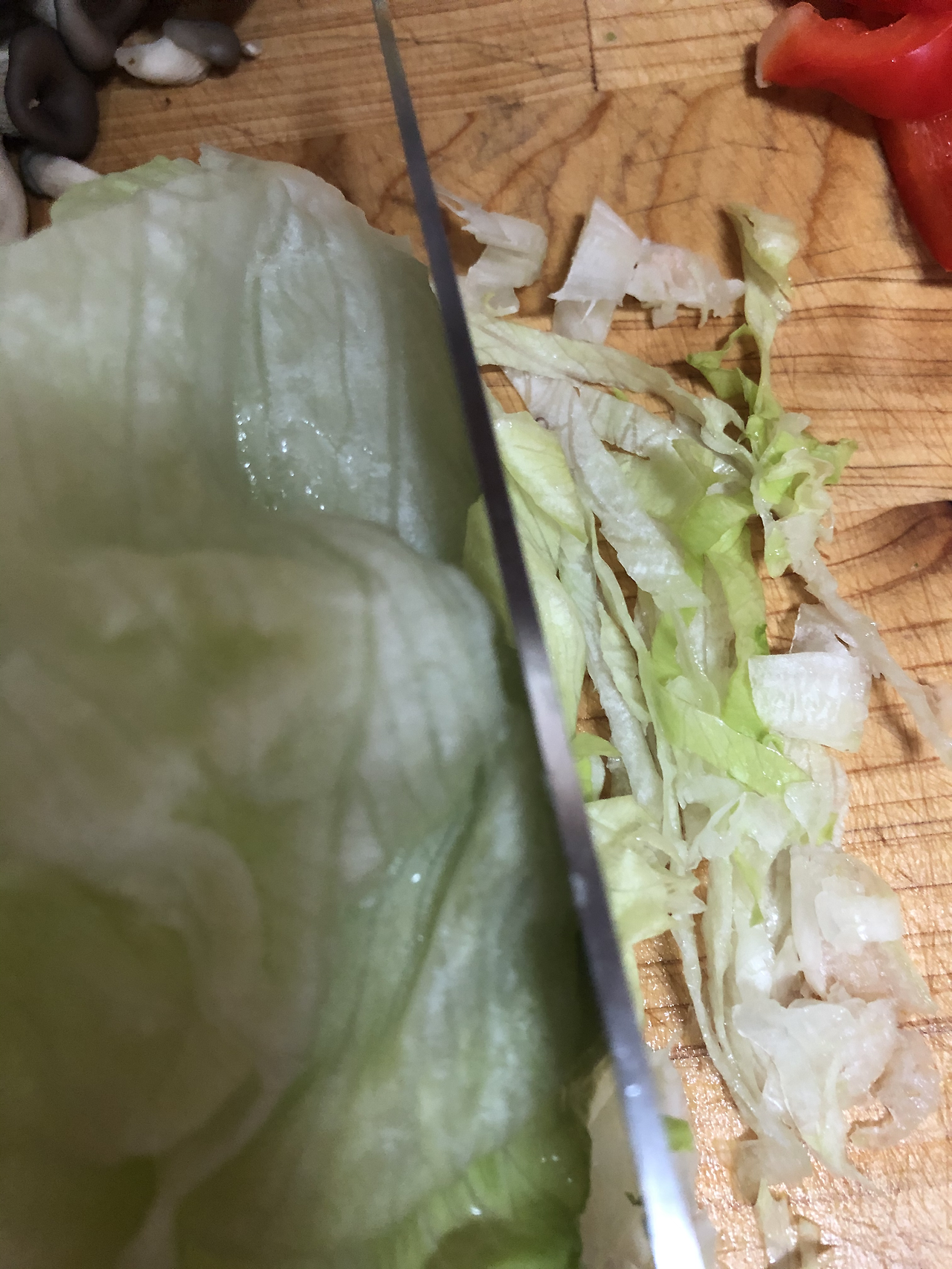 1. 양상추는 익히지 않고 생으로 먹을 거예요. 쌈 싸기 좋게 채를 칩니다.
