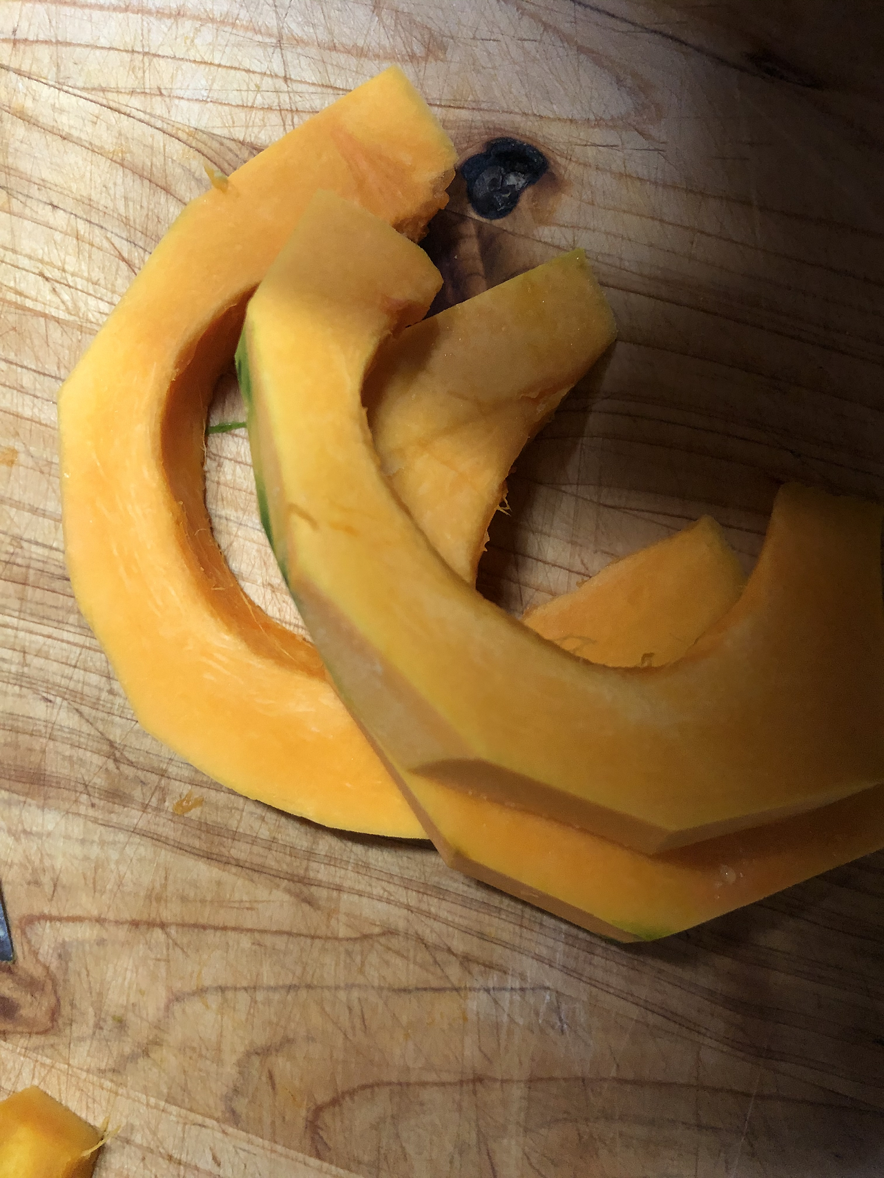 * 단호박은 1~2분 정도 전자레인지에 돌리면 껍질을 쉽게 깔 수 있습니다. 이때 단호박이 익지 않도록 조심합니다.