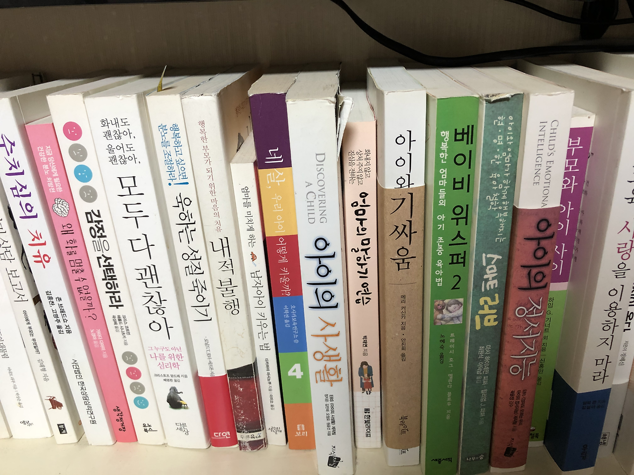게다가 그 집에는 다양한 육아서가 있었습니다. 저는 육아서만 제대로 안 읽었을 뿐, 직장생활을 하던 때에는 관련 서적으로 업무를 배울 정도로는 책을 가까이했습니다. 책의 대부분은, ‘초기의 부모-자식 관계가 자식의 일평생의 관계 모델이 된다’는 ‘애착육아’를 비롯하여, 아이를 하나의 인격체로 존중하며 기질이나 발달 과정을 파악하고 자애로운 사랑을 주라는 류의 현대 심리학에 기반 한 최신 육아 서적이었습니다.