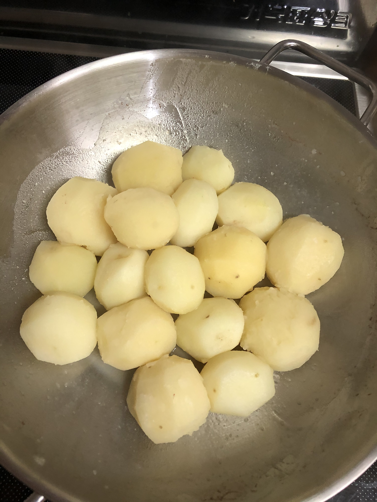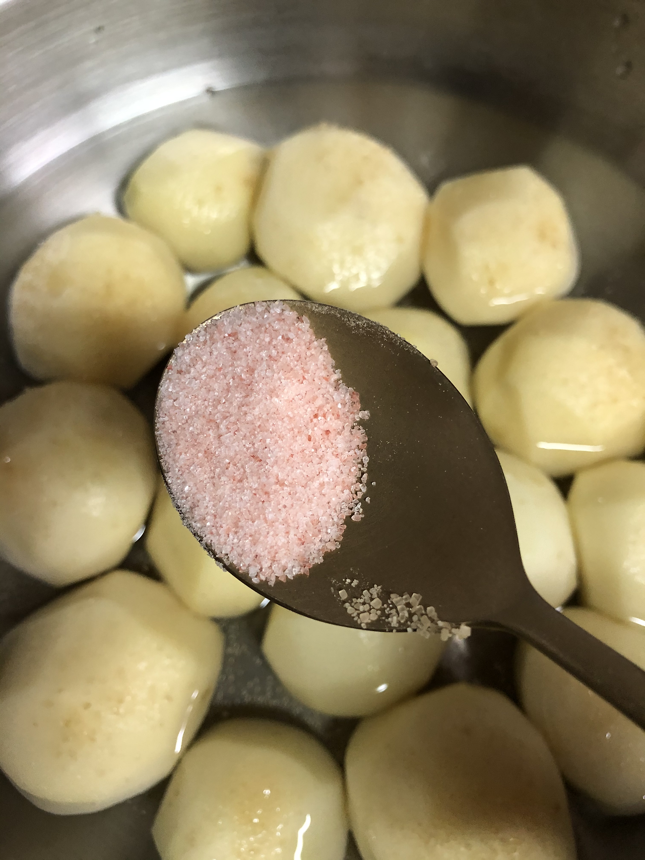 그런데 저는 삶은 감자에는 별로 매력이... 감자 본연의 달지도 고소하지도 짜지도 않은 그 맛이 무엇을 의미하는지 모르겠더라고요. 제 입 짧은 미식가 아들에게도 그런 듯합니다. 그렇다고 인공 당류인 뉴슈가 쓰자니 석연치 않아서 이렇게 삶아 봤습니다.