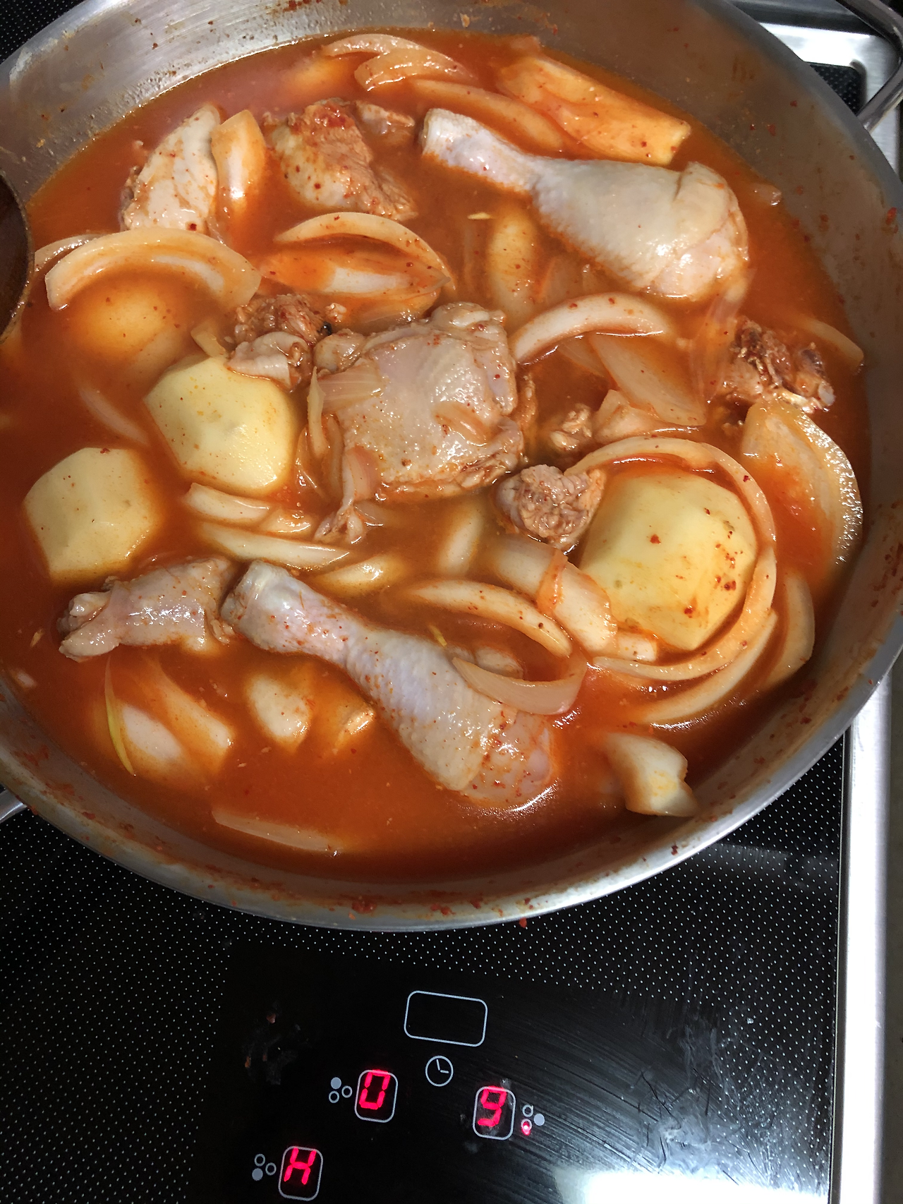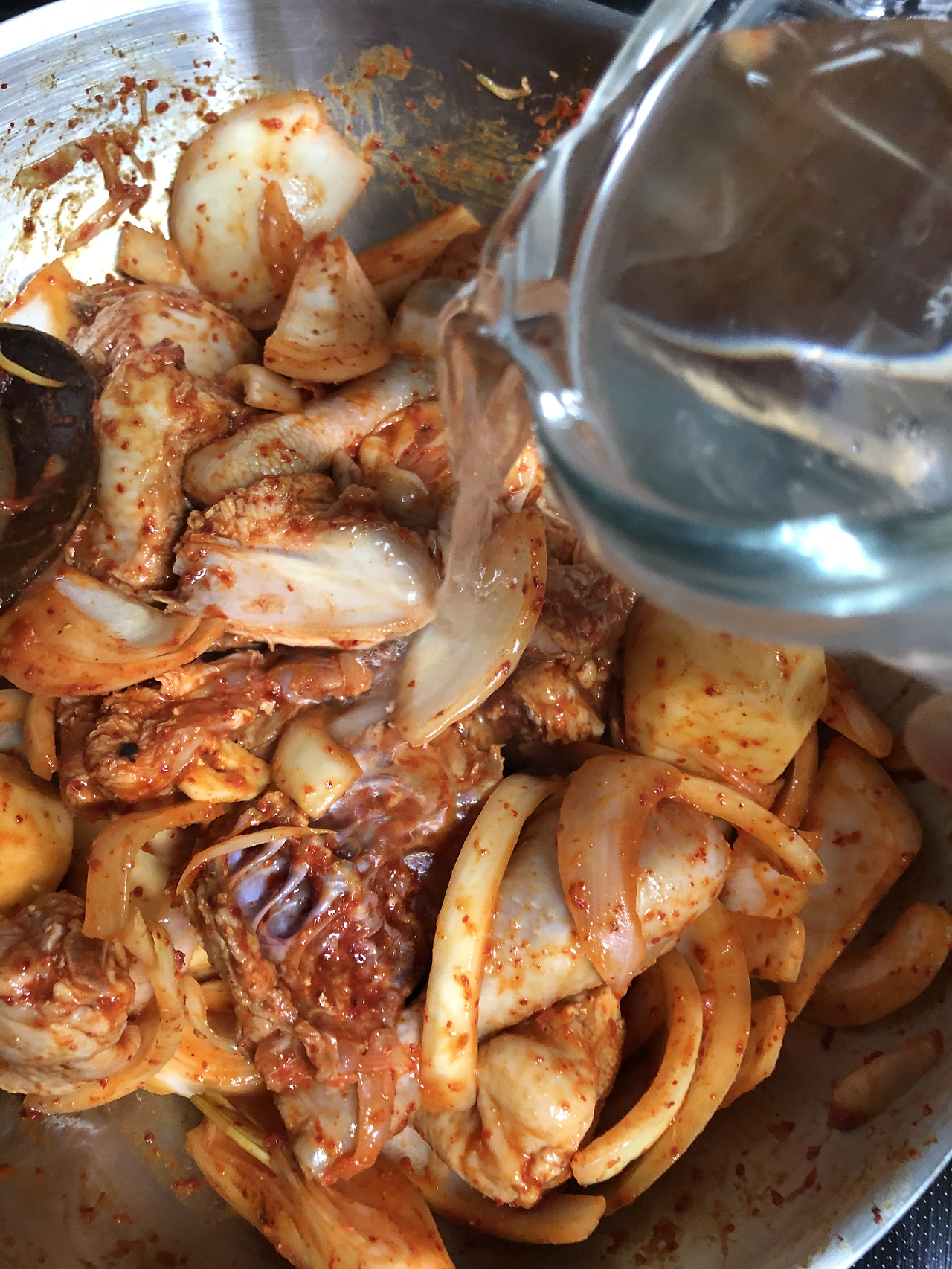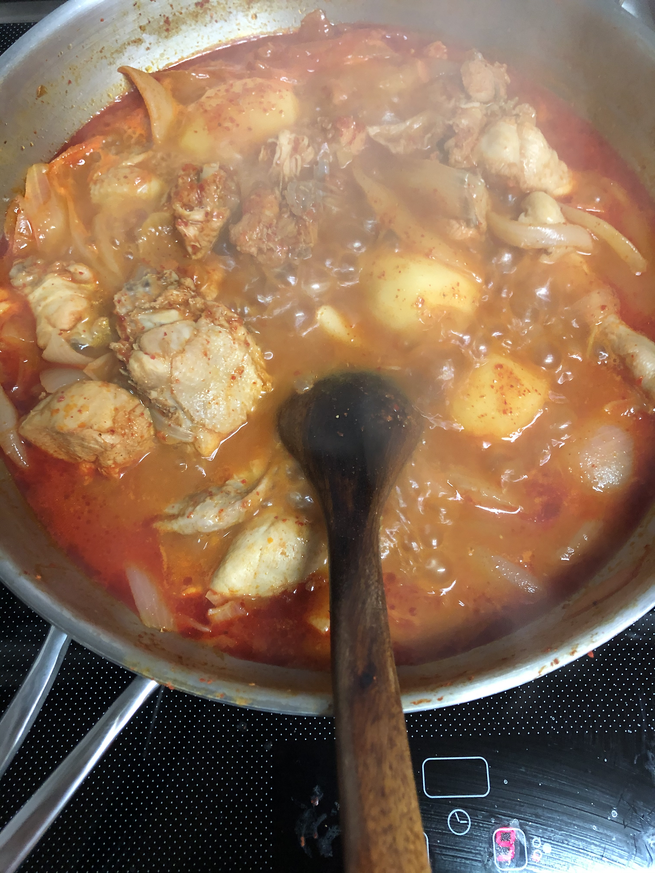 그리고 누가 이 음식의 이름을 다시 닭볶음탕으로 제대로 바꿨을까요? 요리를 해보니 진짜로 볶아서 탕으로 만드네요.