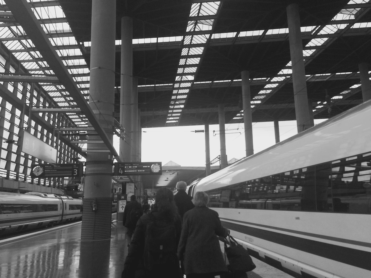 시작과 끝을 마드리드로 정한 이번 여행은 시계방향으로 스페인을 보고 느낄 예정이었다. 단 ‘이 도시는 며칠, 이 도시에서는 이만큼 머무르자’ 가 아닌 충분히 머물렀다고 생각될 때에 이동하자는 룰을 정했다. 오늘 떠나야 하니 급하게 보고 가는 여행은 싫었다. 여유롭게 나만의 시간을 갖고 싶었다. 그렇게 마드리드는 마지막 일정으로 남겨두고 바르셀로나로 이동하기 위해 나섰다. 14시 렌페였지만 숙소 체크아웃 시간에 맞추어 일찍부터 길을 나섰다. 초행길일뿐더러 이 곳은 내가 살던 나라도 아니기에 일찍 출발했다. 솔 광장에서 렌페 역까지는 그리 멀지도 않기에 금방이지만, 내 판단이 너무나도 다행이었다. 지하철로 내려가는 순간 나는 당황했고 미리 끊어둔 10회 권 중 3번을 한번에 모두 써버렸다. 여기저기 돌아다닌 탓에 가방도 더욱 무겁게 느껴졌다. 그때부터 마주치는 사람마다 길을 묻기 시작했다. 그렇게 물어물어 제대로 atocha renfe역에 도착했다. 하지만 이곳에서는 더 큰 산이 기다리고 있었으니.. Sol역과 비교 했을 때 훨씬 넓었으며 이 넓은 곳에서 렌페 역으로 이어지는 길이 어디인지 찾지를 못했다. 그렇게 나는 그곳에서 오르락 내리락 엄청나게 반복했다. 같은 경찰에게 2번이나 물어 제대로 된 길을 찾았고 드디어 렌페 역에 도착했다. 길지 않은 길이 얼마나 길게 느껴졌는지. 다행히 아침을 든든하게 먹었으며 일찍 나선 덕에 역에 도착해서도 2시간이나 남았다. 당시는 긴장에 이마에서 땀이 맺혔지만 지나고 보니 바보 같은 내가 재밌었다. 혹시 지하철을 반대로 탈까 봐하는 걱정에 몇 분이면 도착하는 곳을 몇 시간 일찍 출발했다니 겁쟁이처럼 느껴지기도 했지만, 여행이기에 이런 미련한 행동들도 가능할 것이라 생각하니 이 모든 상황 하나하나가 행복했다. 헤매는 것 마저 행복하다니 말이다. 캐리어에 다리를 걸치고 벤치에 앉았다. 그리고 휴대폰 메모장에 이 순간을 기억하기 위해 메모를 남겼다.