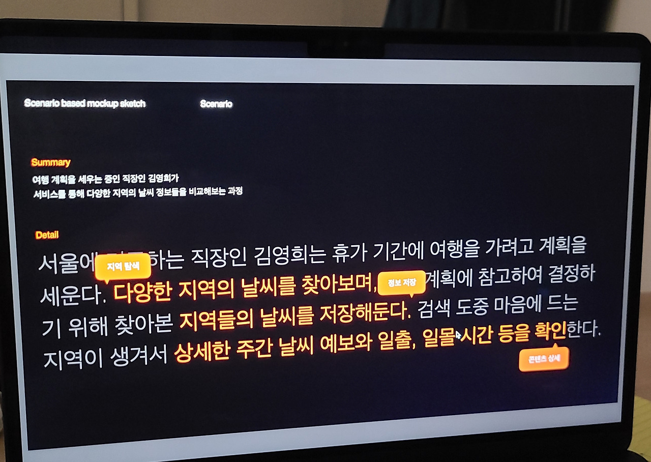- UX컨셉의 재해석 : 아이디어 도출을 통해 잡은 방향성을 시각적 결과물로 재해석한다.